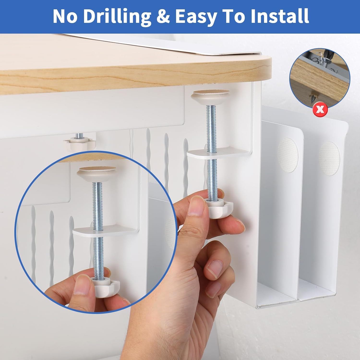 - No Drilling & Easy To Install: Our under desk laptop mount, side desk laptop holder is easy to install. And the silicone cushion can prevents scratches on desks and other objects, the rounded corners design can also avoid scratches. No extra tools are needed and importantly it won't damage your desk. It only took you 2 minutes to install our clamp on desk organizer to your desk