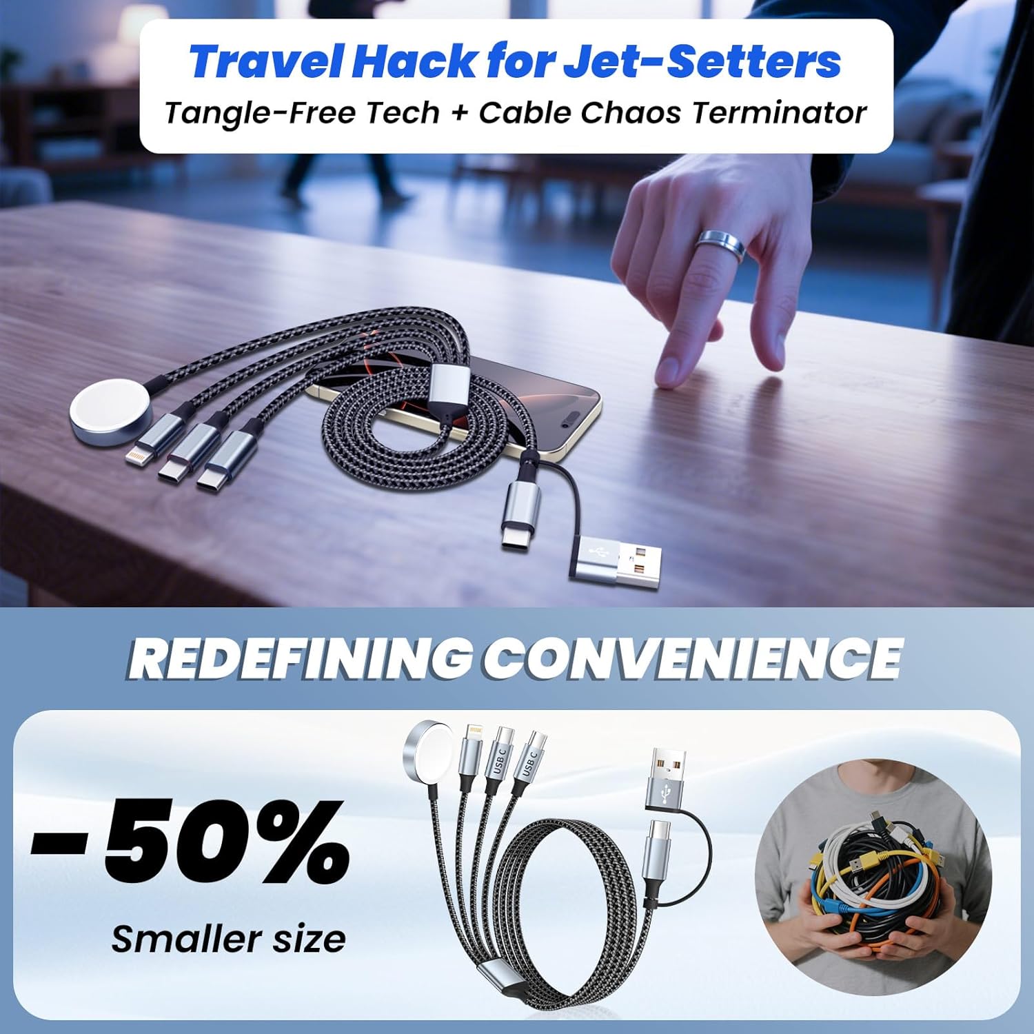 - 【UNIVERSAL CHARGING CABLE】The 2025 Portable travel essentials travel chargers cable for multiple devices is compatible with all iWatch Ultra series 9/SE/8/7/6/5/4/3/2/1; Type-C connector for all usb c devices such as iPhone 16/15/iPad Pro, Galaxy S25 and more; Light-ning port for 14/13/12/11 and more (Note: only the ip port support both charging and data sync, caplay; type-c port only for charging).This product supports bulk purchasing, making it ideal for businesses and large orders.