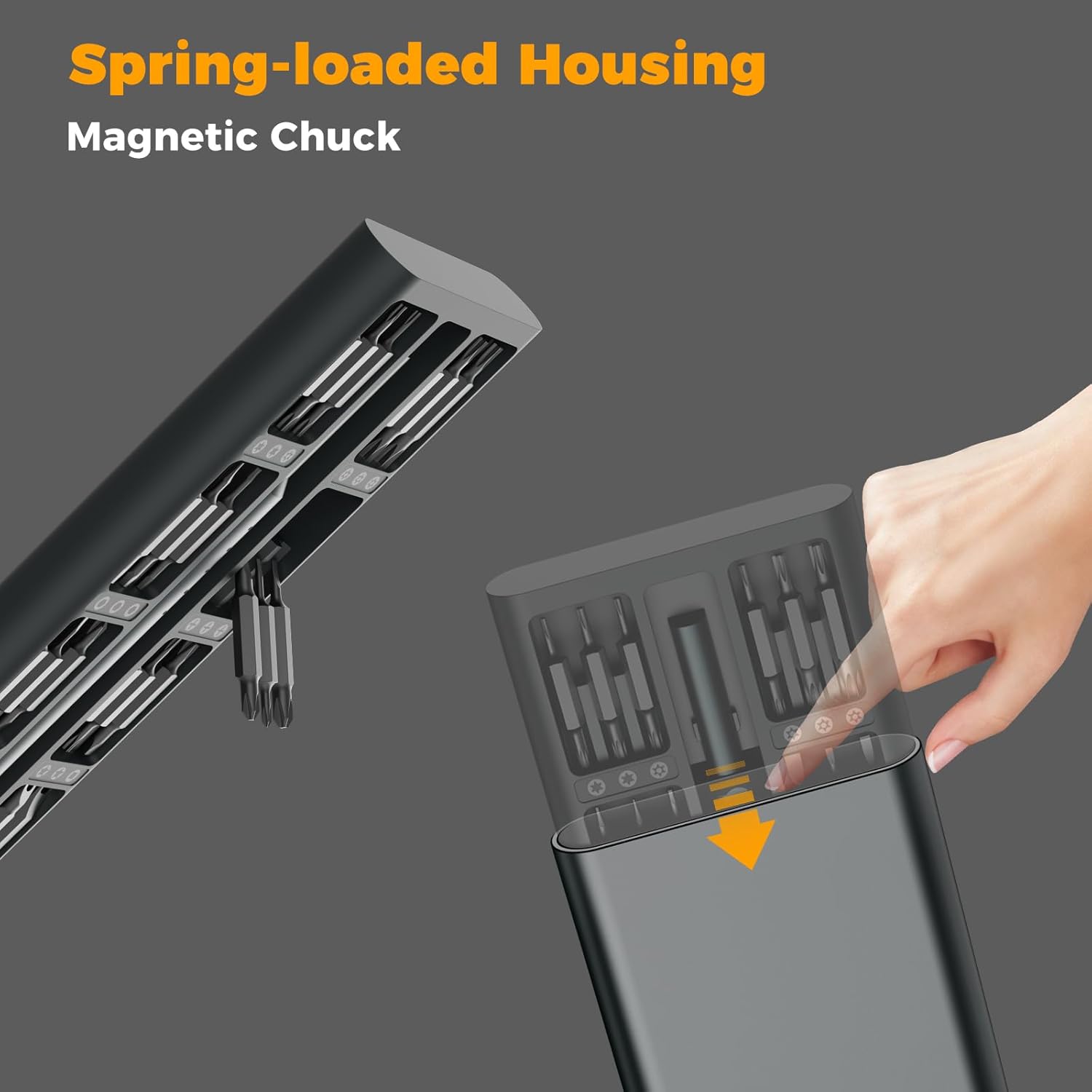 - Enhanced Magnetic Security: The cordless screwdriver securely locks into a spring-loaded housing, with bits instantly snapping into a magnetic chuck for zero slippage, ensuring reliable performance in precision tasks