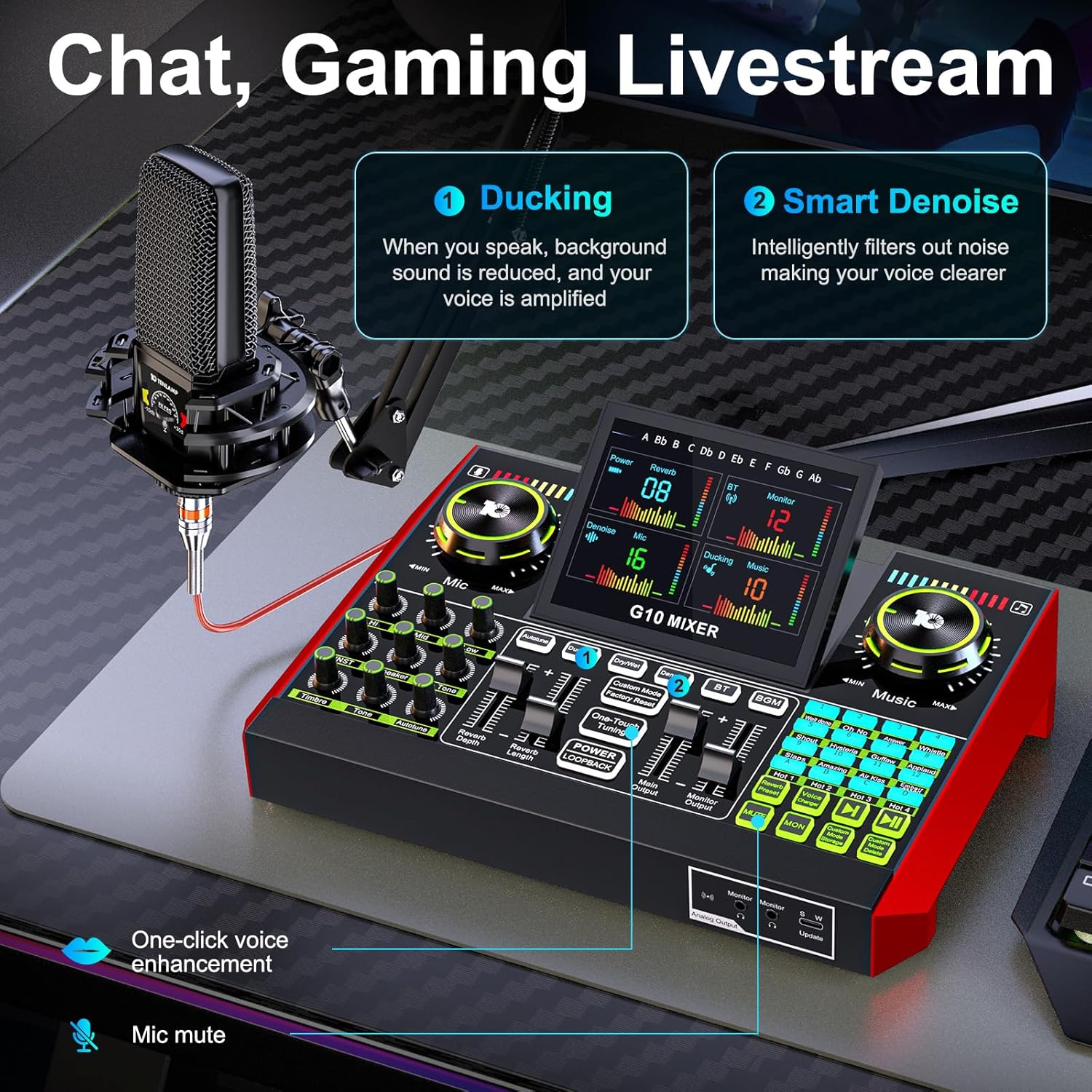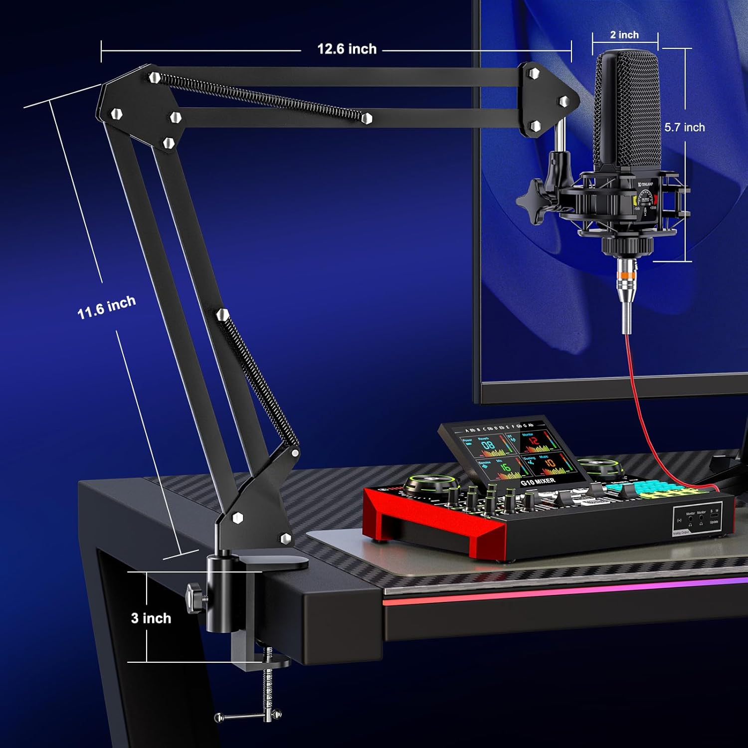 - 【Podcast Equipment Bundle】The podcast microphone bundle includes everything you need for professional-quality audio creation: a 3.5mm condenser microphone with a boom arm and the Sound Board. Perfect for podcasters, gamers, streamers, and content creators who want an all-in-one solution for mixing, recording, and streaming.