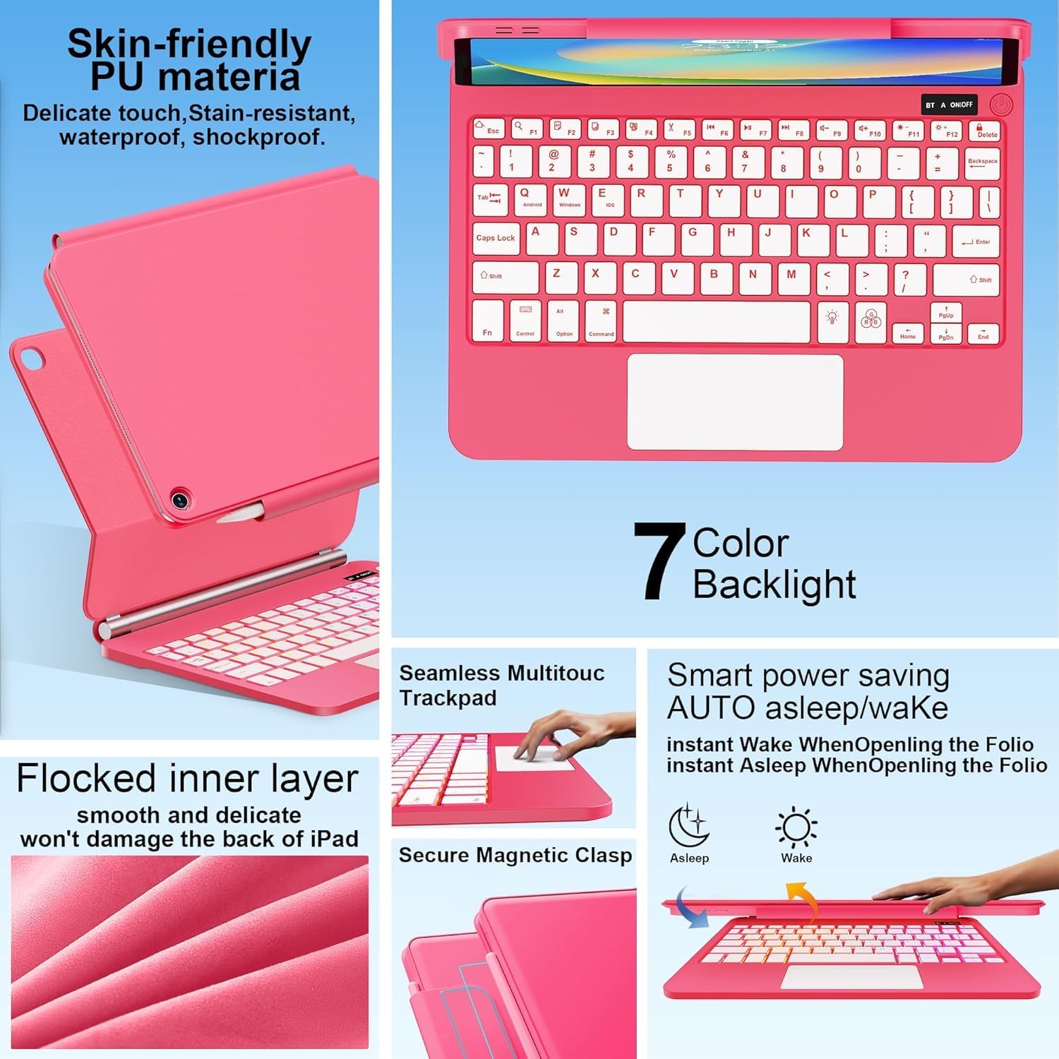 - 7-Color Backlit Keyboard Case for iPad 10.2 9th/8th/7th Gen:From dawn to dusk, adapt effortlessly! Adjusting 7 backlight and 3 levels of brightness ensures clear visuals in every setting, enhancing your immersive experience.