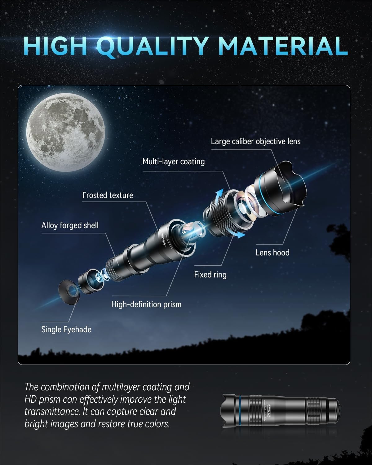 - Bring the moon to your eyes: Our 28x telephoto lens combines portability with zoom capabilities to bring around 8000M far away subjects closer in a easy way, It is mostly a versatile tool that performs solidly in various applications (taking zoom pictures, stargazing, bird/animal watching etc