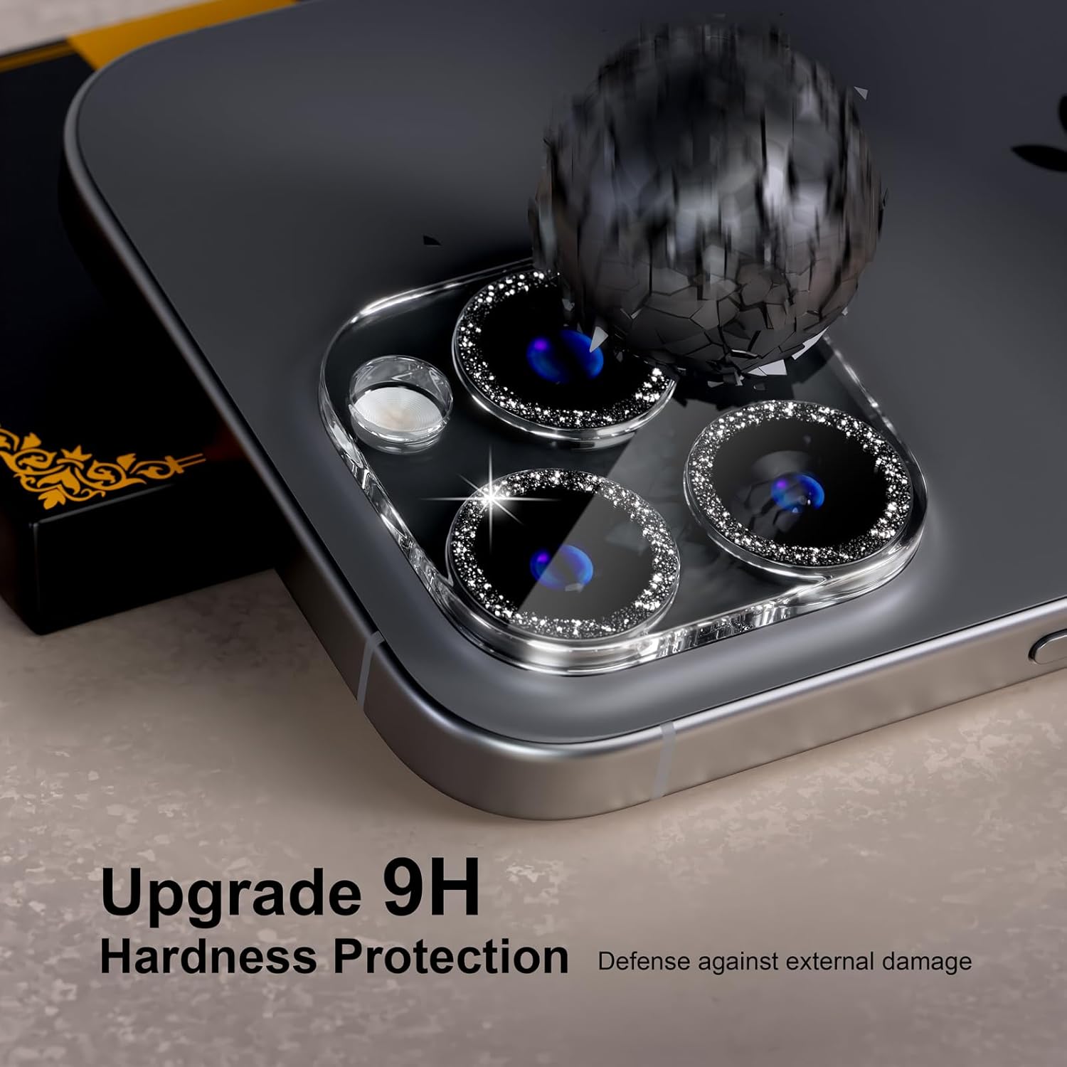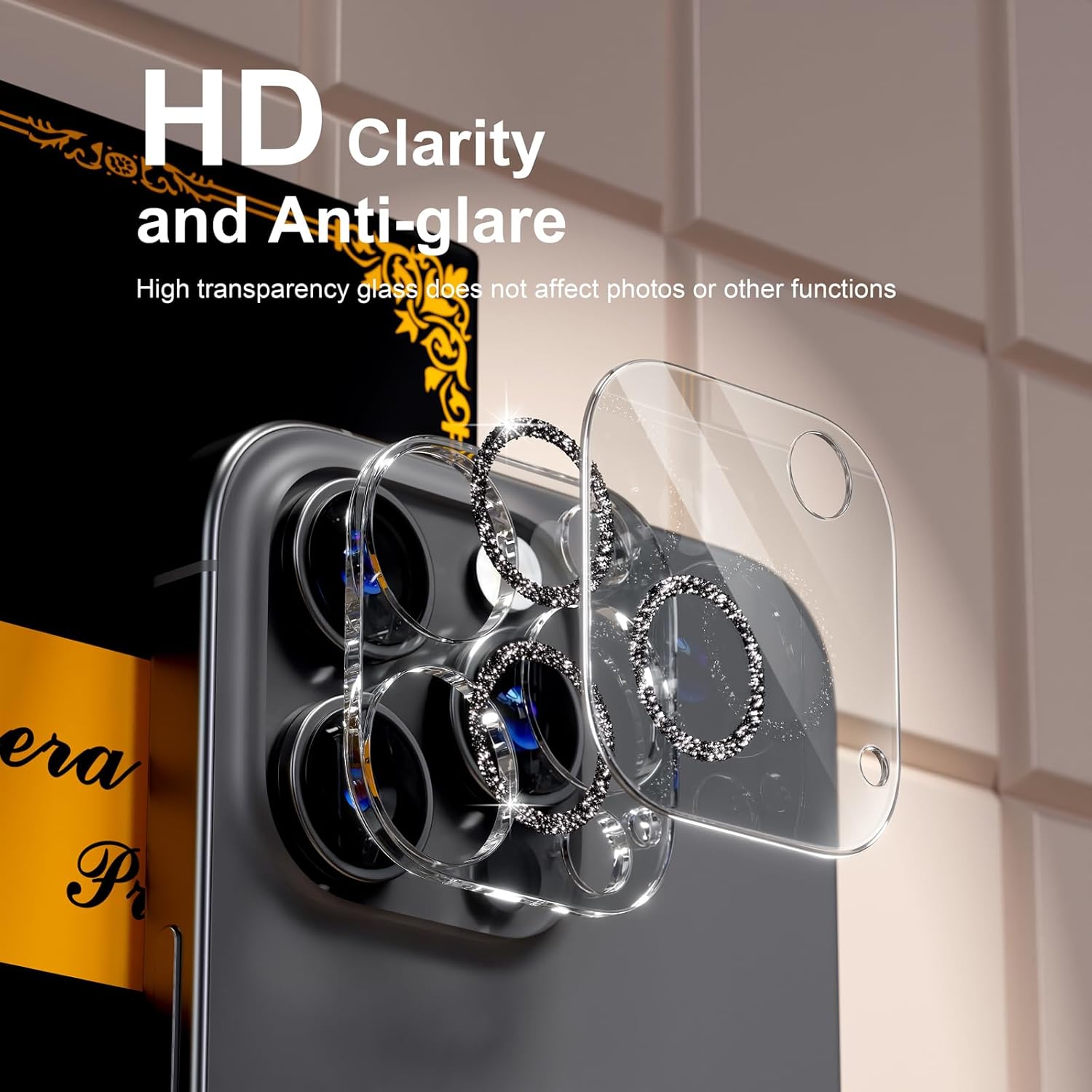 beuxece for 6 Pack iPhone 15 Pro/iPhone 15 Pro Max Camera Lens Protector [Drop Protection] [Case Friendly] [Easy Installation] 9H Tempered Glass Camera Screen Protector Cover, Glitter Black
