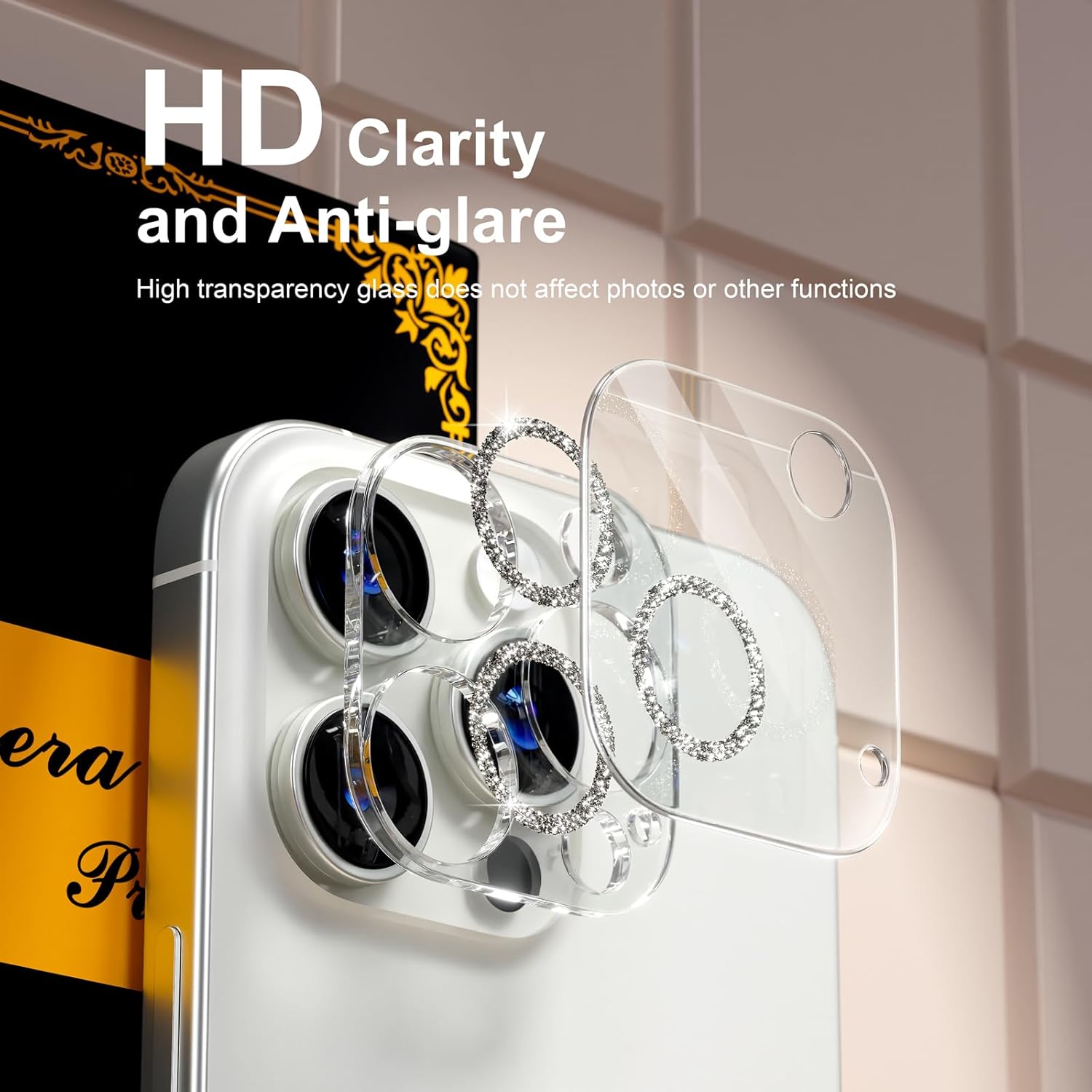 - Perfect Photography: The 9H sapphire tempered glass material is made of anti reflective film, with 99.99% light transmission, which allow you take flawless clear vivid photo with no glare. The 15 pro max / pro camera protector restores the amazing photo quality, giving you a pleasant shooting experience