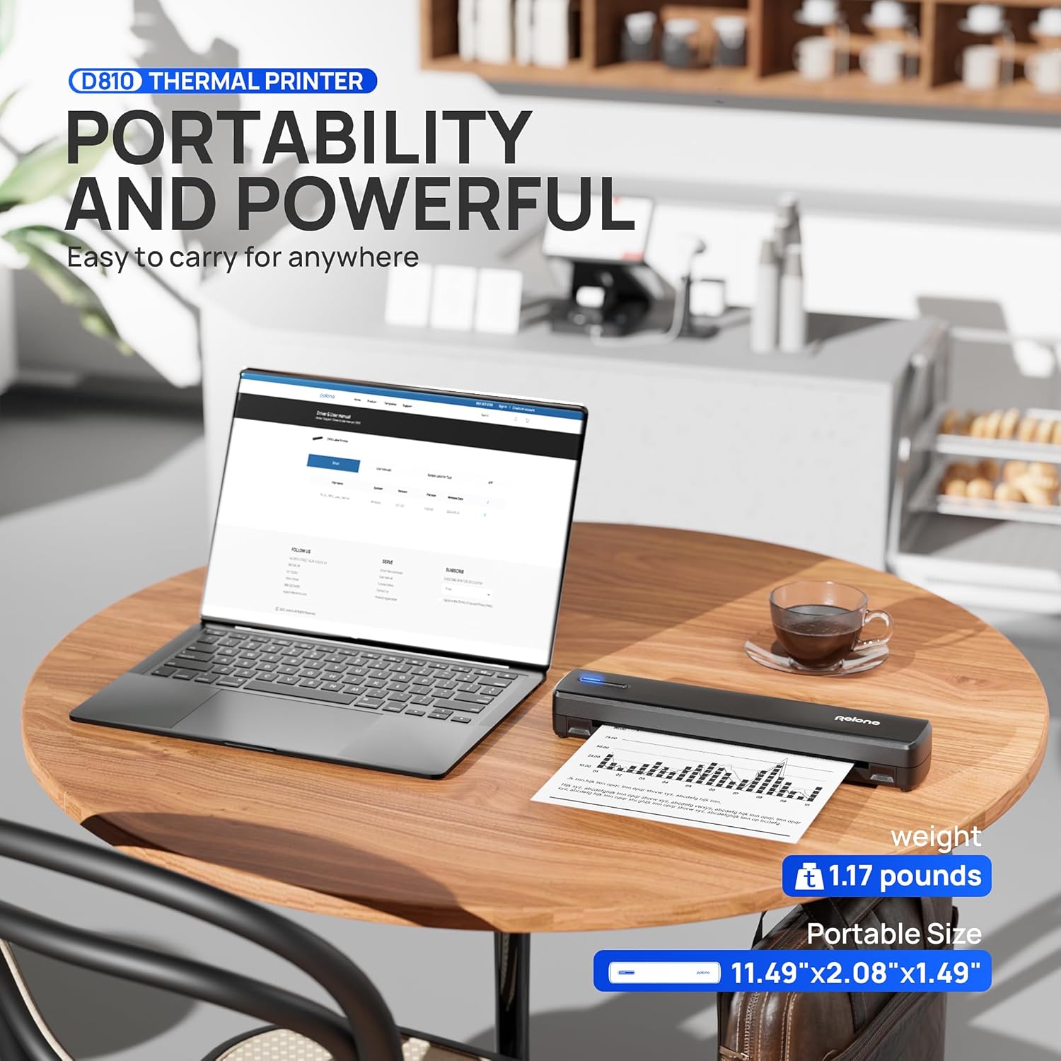 - Portable Printer--Uses Thermal Paper Only (Not Regular Copy Paper), Prints in Black & White. POLONO portable printer is small in size and weighs only 1.17 pounds. Whether it's in your car, backpack, or during business travel, D810 bluetooth thermal printer is your reliable companion for office documents, inventory lists, business checks and more. Note: Always match the paper size setting on your phone/PC to the paper used