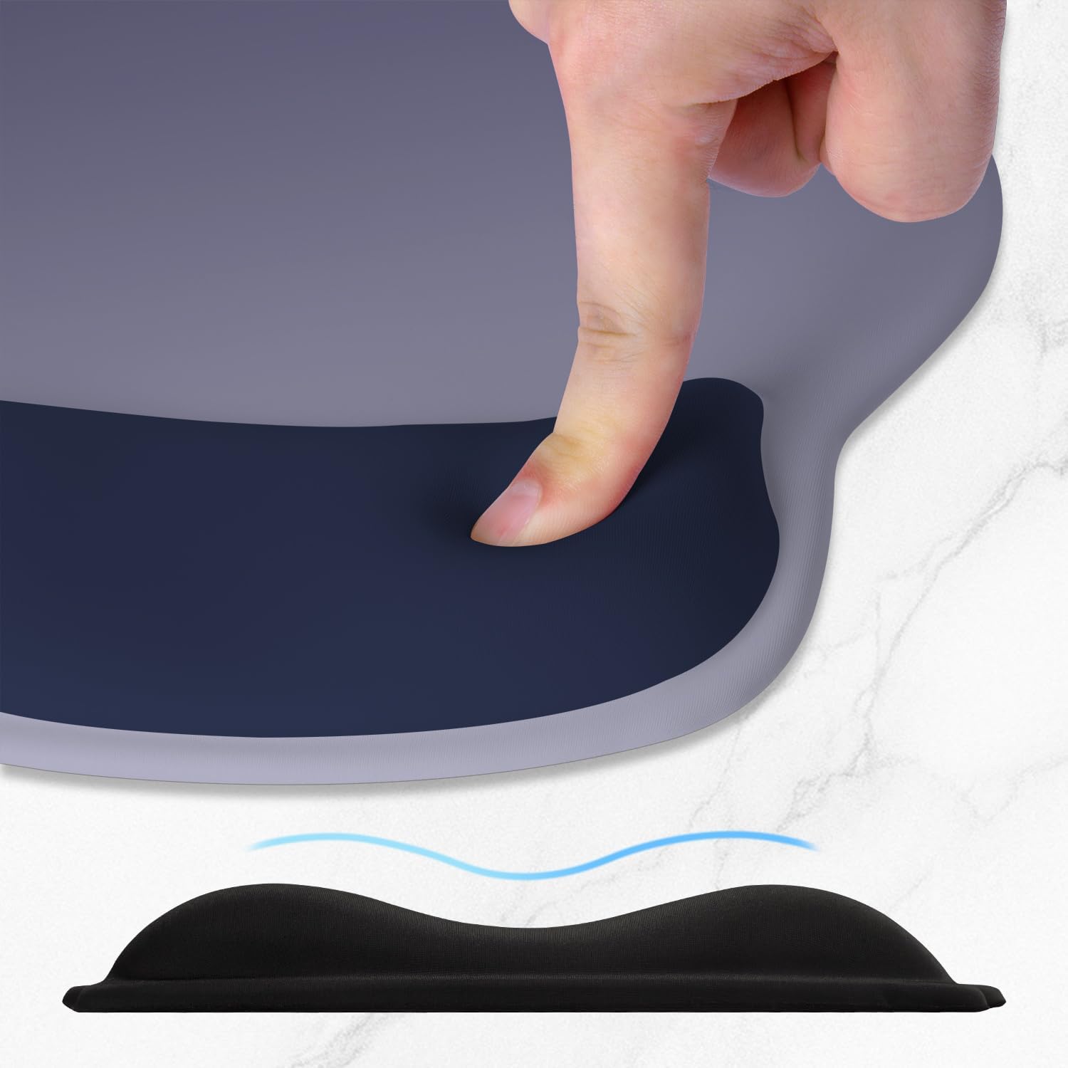 ITNRSIIET Ergonomic Mouse Pad with Wider Memory Foam Wrist Rest +17% - Curved Cushion Reduces Pressure 20%, Pain Relief, Non-Slip, Smooth, Cute Colors, 9.85 x 9 in, Gray Blue Gradient