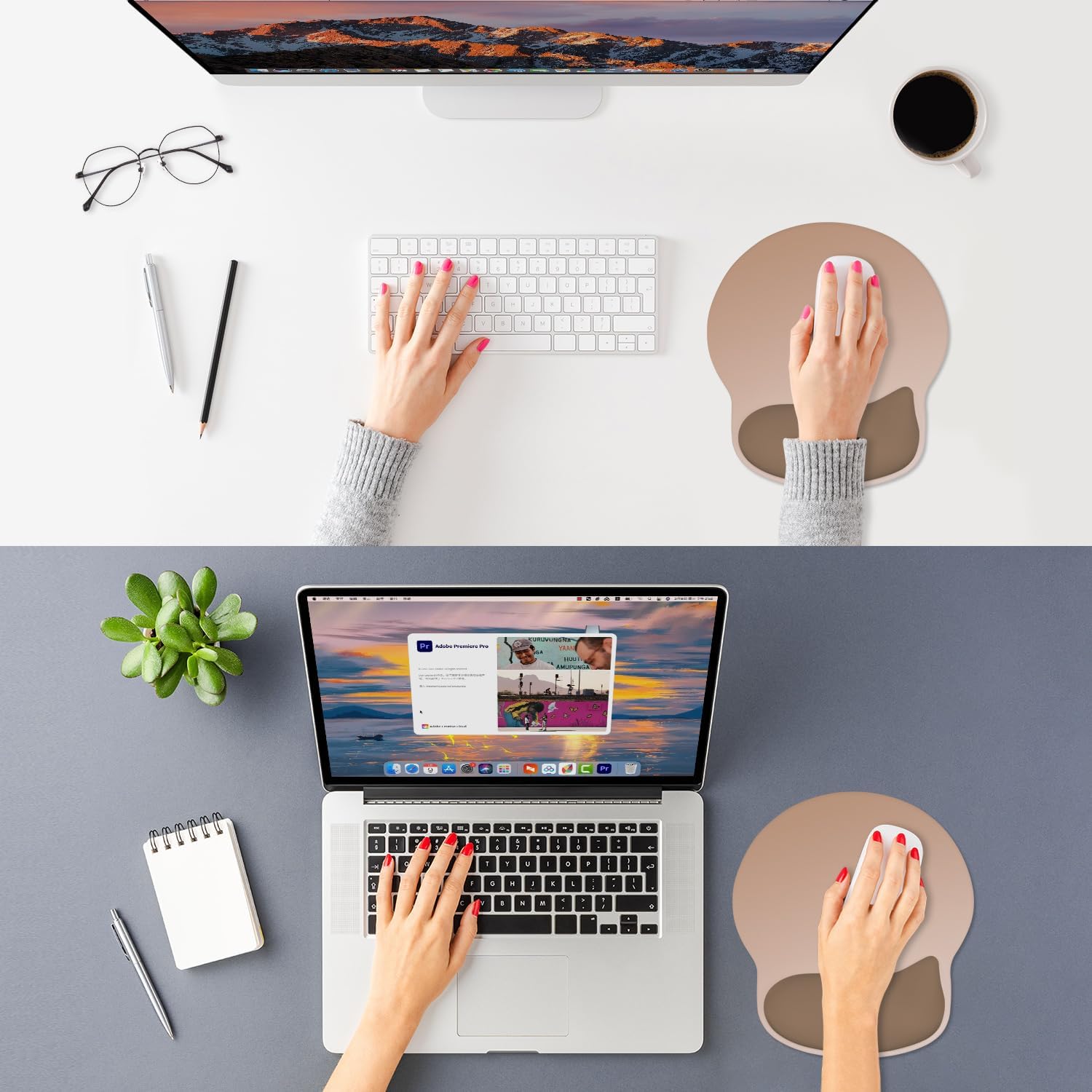 ITNRSIIET Ergonomic Mouse Pad with Wider Memory Foam Wrist Rest +17% - Curved Cushion Reduces Pressure 20%, Pain Relief, Non-Slip, Smooth, Cute Colors, 9.85 x 9 in, Soft Brown Gradient