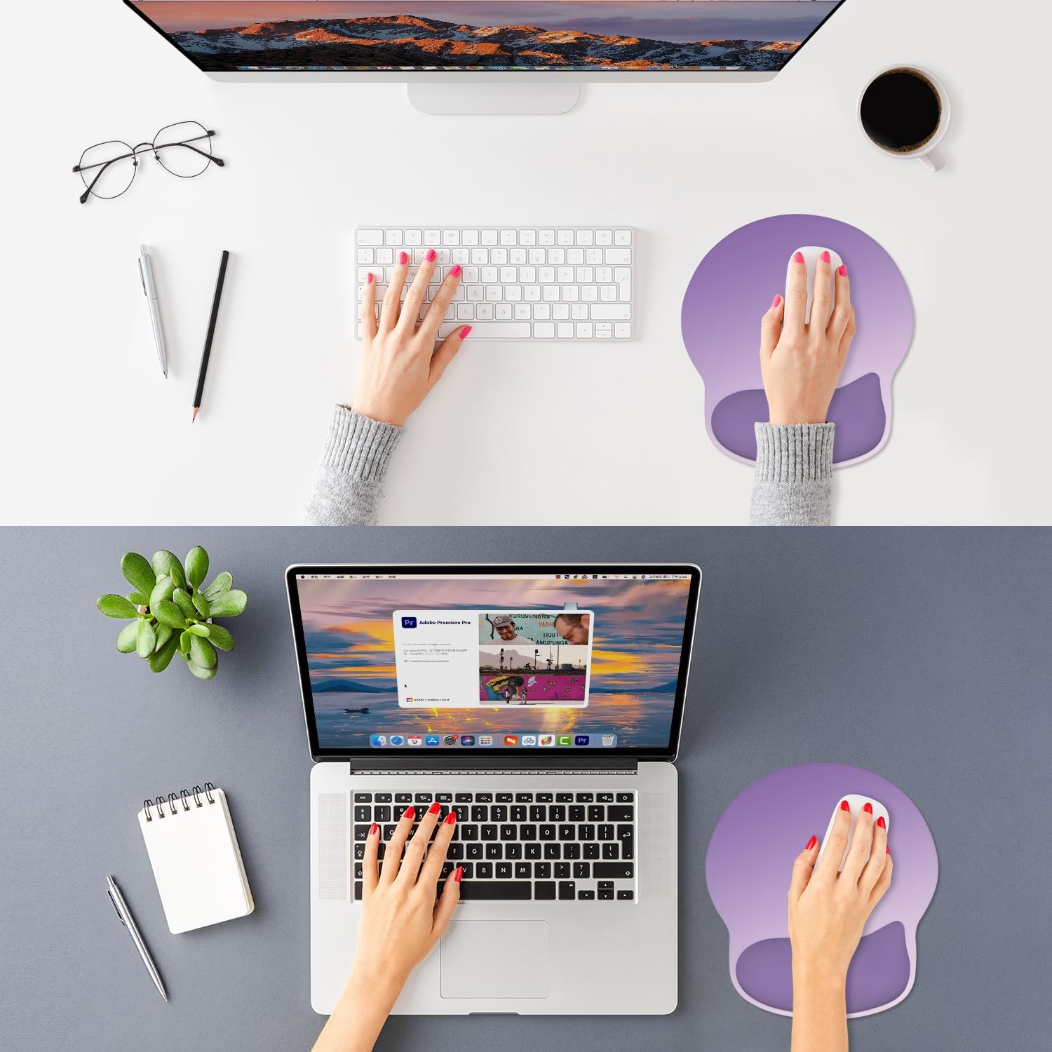 ITNRSIIET Ergonomic Mouse Pad with Wider Memory Foam Wrist Rest +17% - Curved Cushion Reduces Pressure 20%, Pain Relief, Non-Slip, Smooth, Cute Colors, 9.85 x 9 in, Lavender Fade