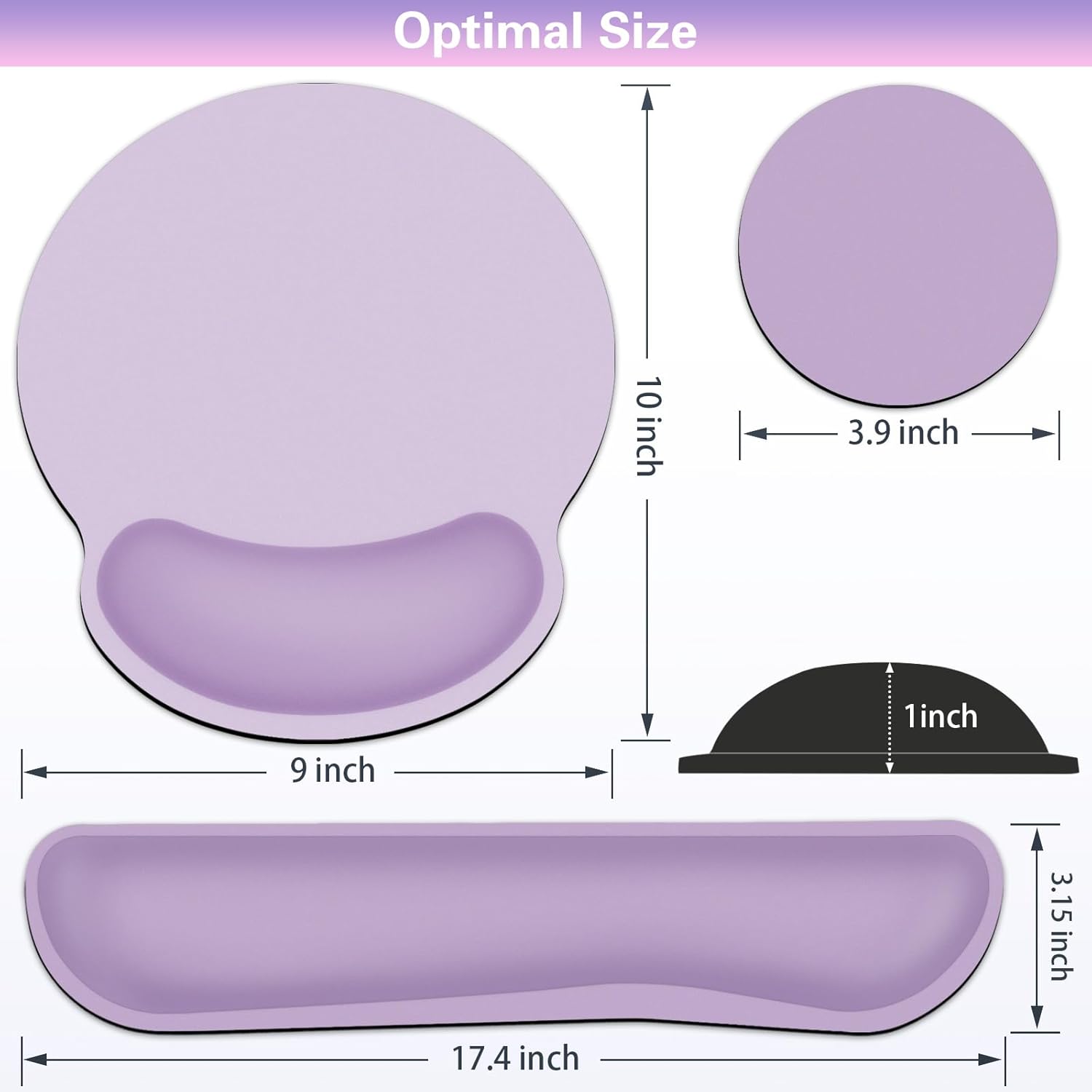 Mouse Pad with Wrist Rest Set, 3-in-1 Wrist Support Mousepad Set, Gaming Mat Pad with Anti-Skid Base,Ergonomic Mouse Pad Purple,Memory Foam Gel Wrist Rest for Computer Keyboard