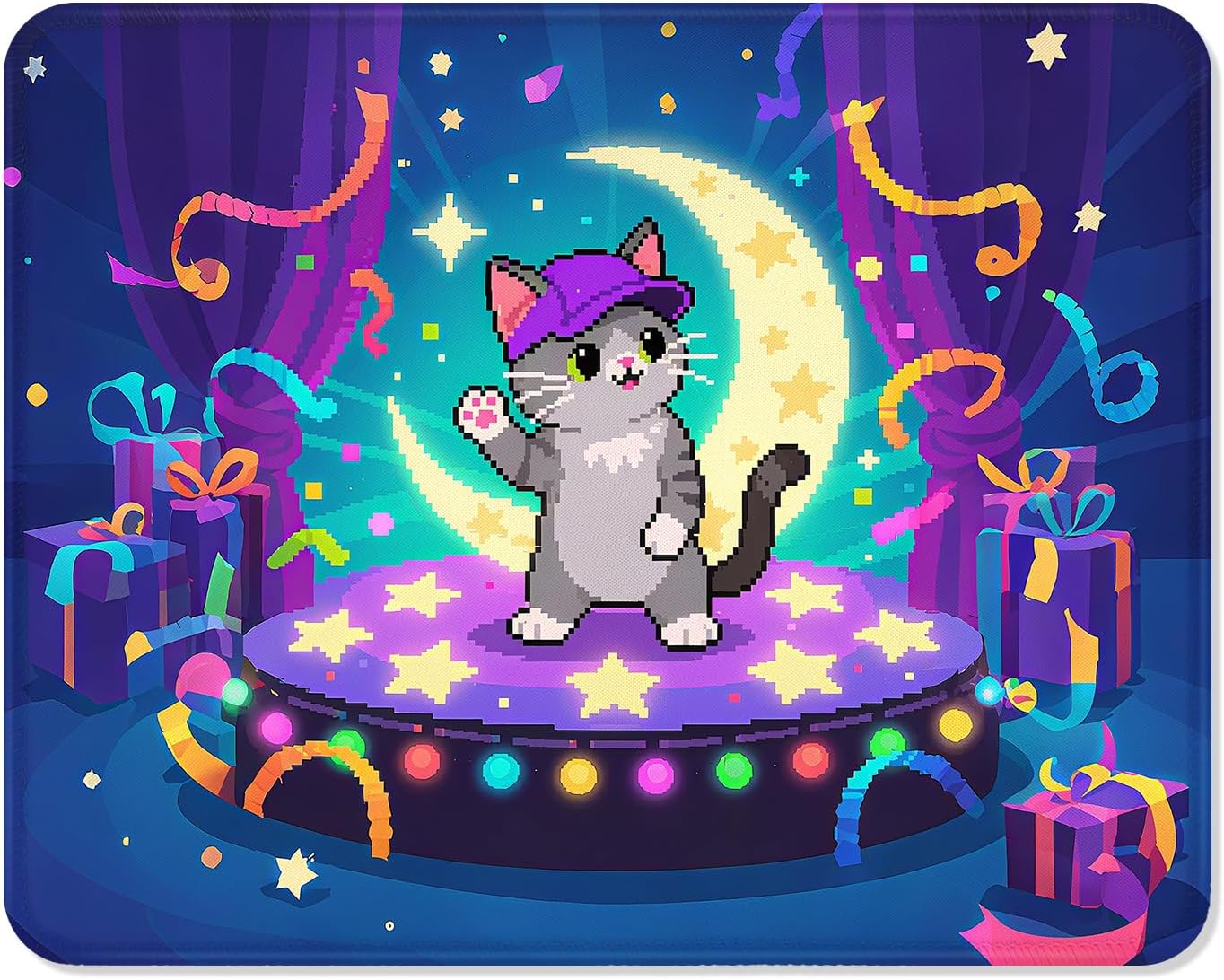 ITNRSIIET Mouse Pad Non-Slip Rubber Base Smooth Surface Stitched Edges Waterproof Durable Compatible with All Mice for Office & Gaming, Desk Accessory, 10.2x8.3x0.12 inch, PixelPartyCat