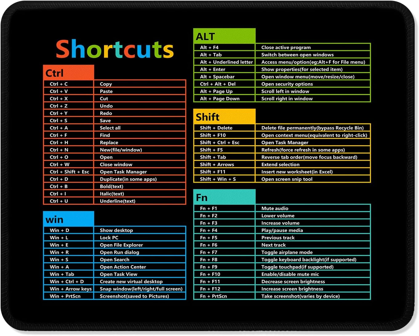 ITNRSIIET Mouse Pad Non-Slip Rubber Base Smooth Surface Stitched Edges Waterproof Durable Compatible with All Mice for Office & Gaming, Desk Accessory, 10.2x8.3x0.12 inch, WinShortcuts