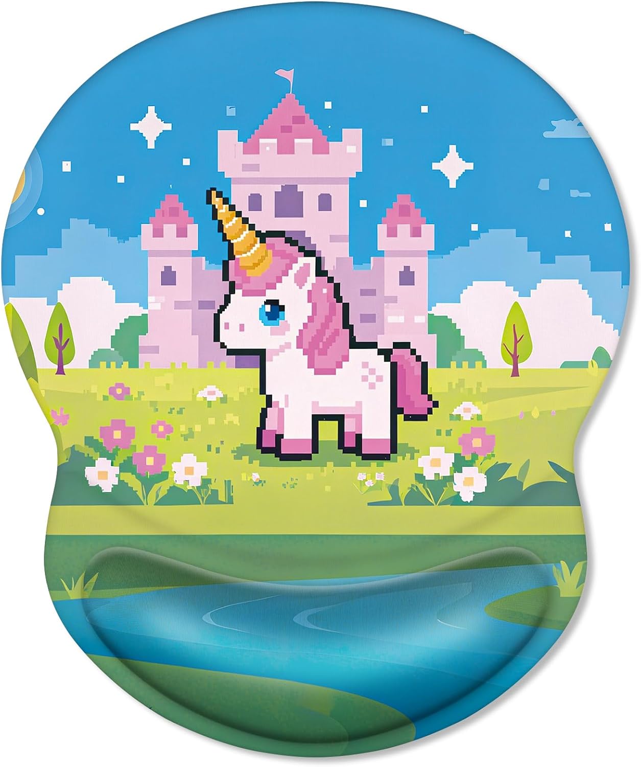 ITNRSIIET Ergonomic Mouse Pad with Comfort Gel Wrist Rest, Non-Slip PU Base, Smooth Textured Surface, Reduces Hand Fatigue & Wrist Pain, 8.7 x 7.2 Inch for Office Gaming Home, PixelCastle