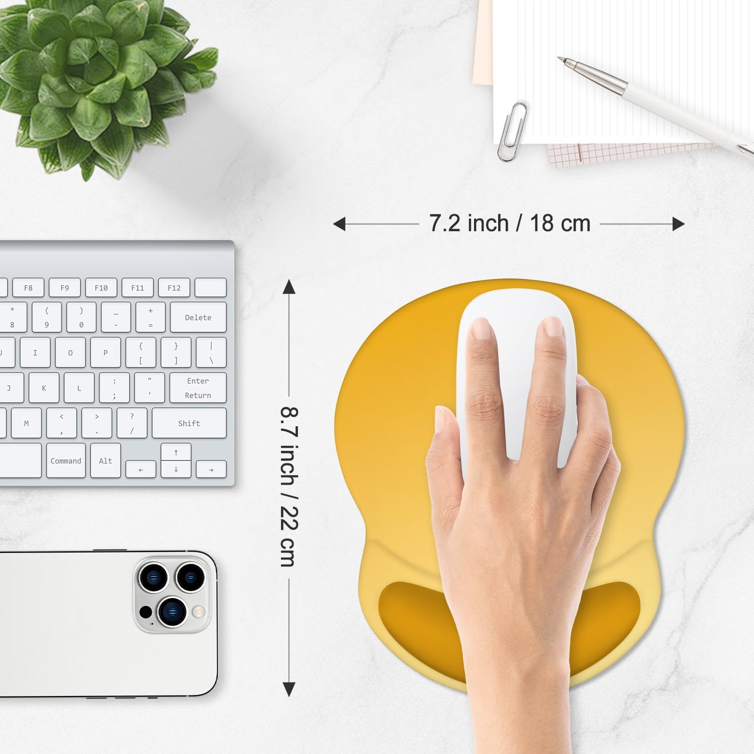 ITNRSIIET Ergonomic Mouse Pad with Comfort Gel Wrist Rest, Non-Slip PU Base, Smooth Textured Surface, Reduces Hand Fatigue & Wrist Pain, 8.7 x 7.2 Inch for Office Gaming Home, Yellow Gradient