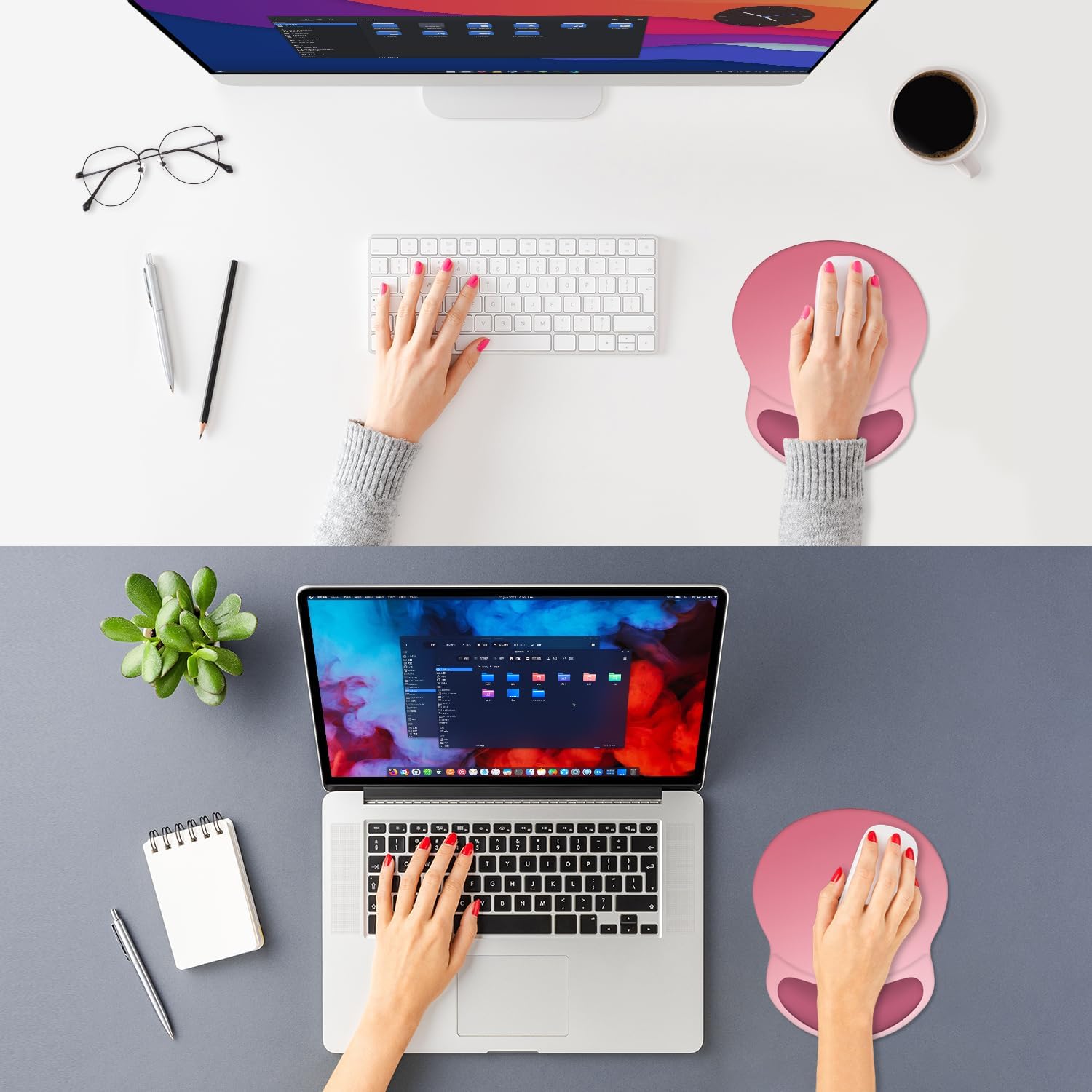 ITNRSIIET Ergonomic Mouse Pad with Comfort Gel Wrist Rest, Non-Slip PU Base, Smooth Textured Surface, Reduces Hand Fatigue & Wrist Pain, 8.7 x 7.2 Inch for Office Gaming Home, Pink Ombre