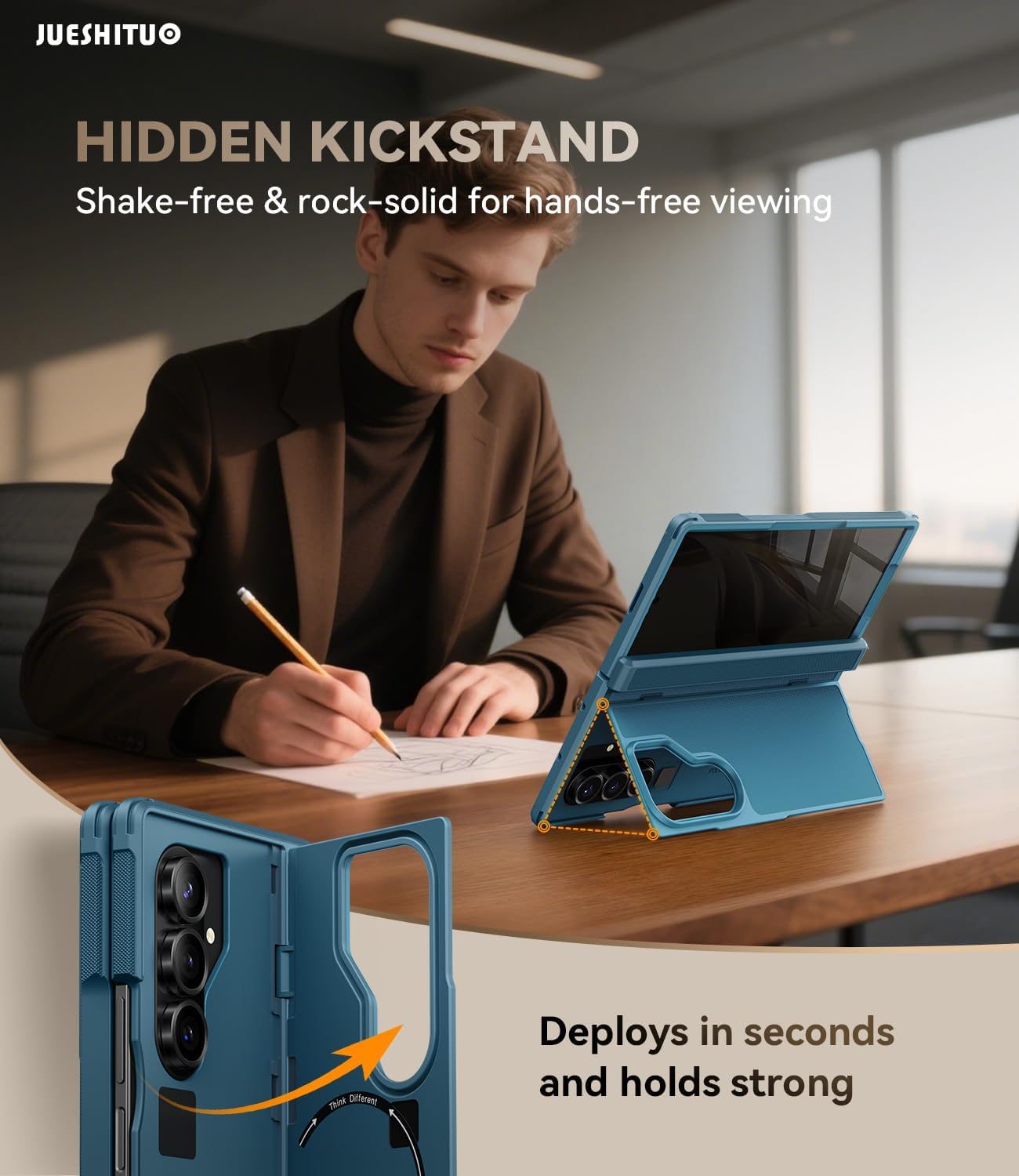 JUESHITUO for Samsung Galaxy Z Fold 7 Case with Privacy Screen Protector, Hidden Kickstand & MagSafe, Military Shockproof Cover for Galaxy Z Fold 7, Hinge Protection, Blue