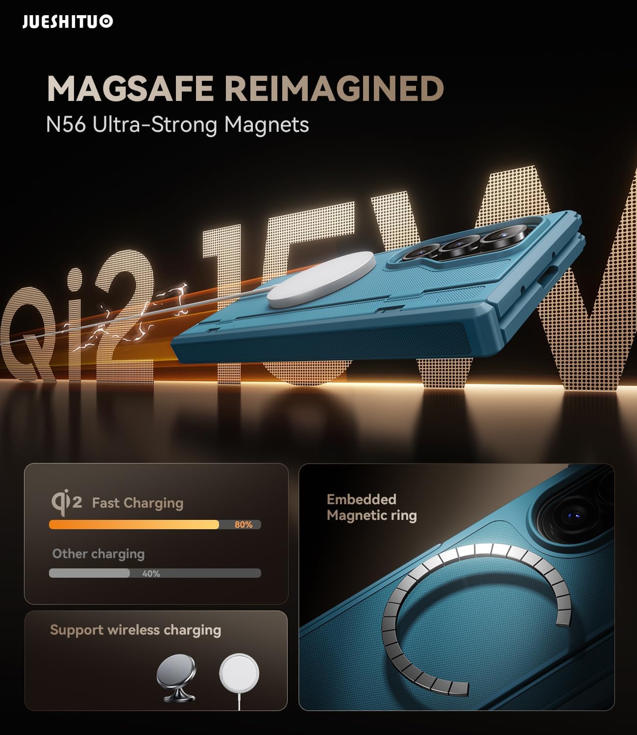 - Compatible with MagSafe: The samsung z fold 7 case supports seamless magnetic attachment to MagSafe chargers and accessories. Maintains ultra-thin profile, wireless charging, and precise button access. Note: Not compatible with non-magnetic clip-style car mounts