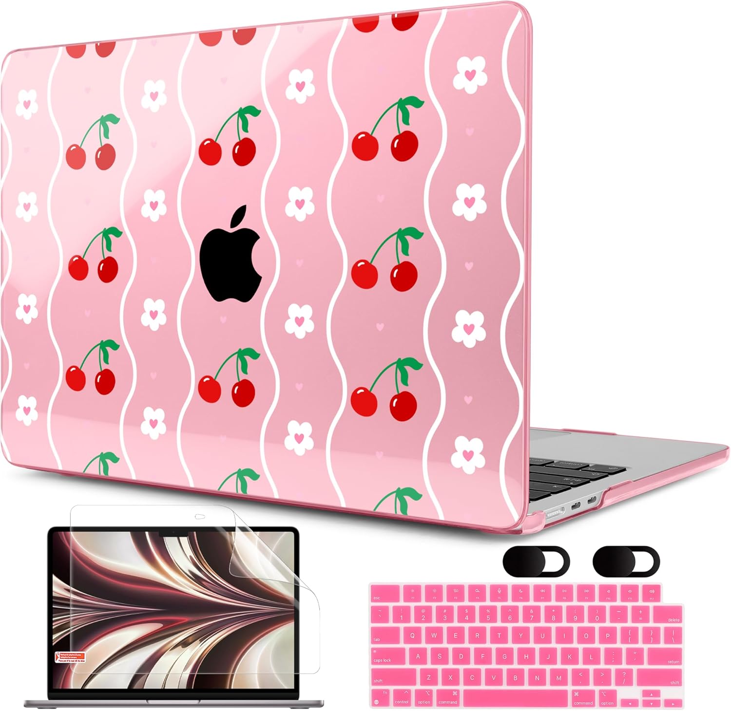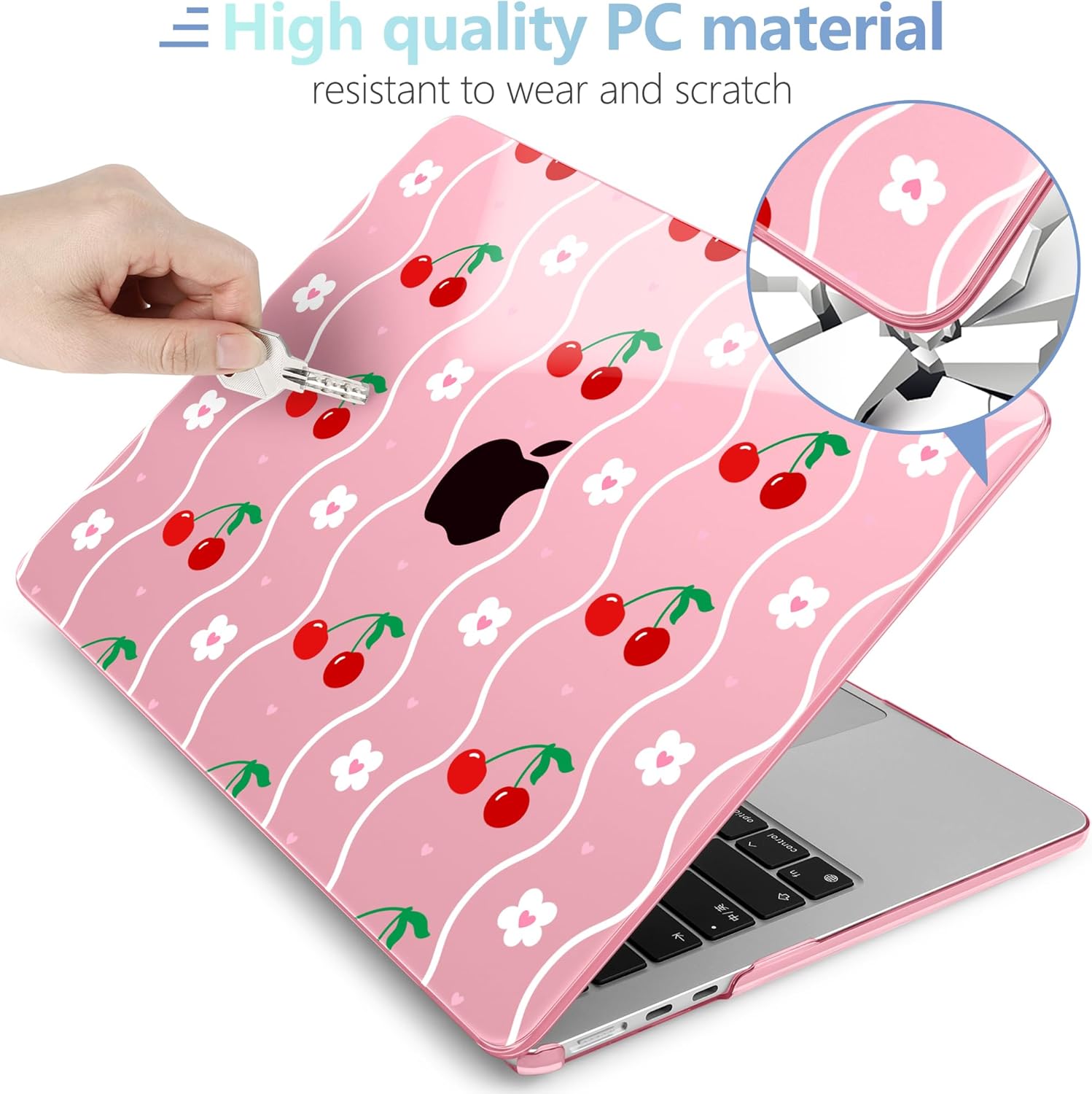 MEEgoodo Case for M4/M3/M2 MacBook Air 13.6 inch Case 2025 2024 2022, Fit Model A3240/A3113/A2681, Laptop Hard Shell with Keyboard Cover Compatible with MacBook Air 13 inch, Sweet Cherries