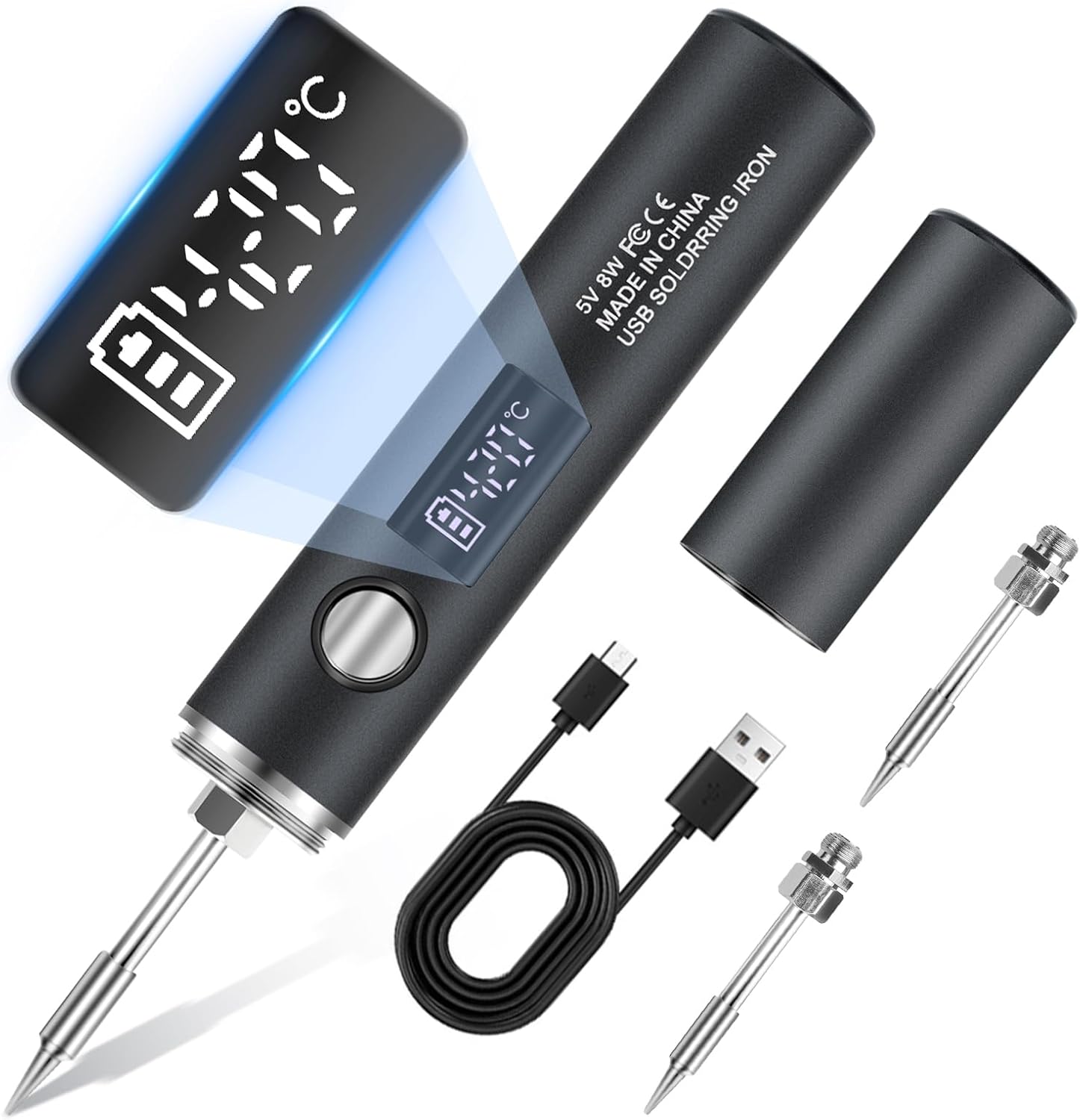 - Cordless Soldering Iron: Soldering kit built-in 1400mAh larger rechargeable battery, get rid of the wire. Equipped with TYPE-C charging connector, Fully charged can be used about 50 minutes, the specific usage time depends on the temperature you set. Tip: We recommend using a 5V/2A adapter for charging