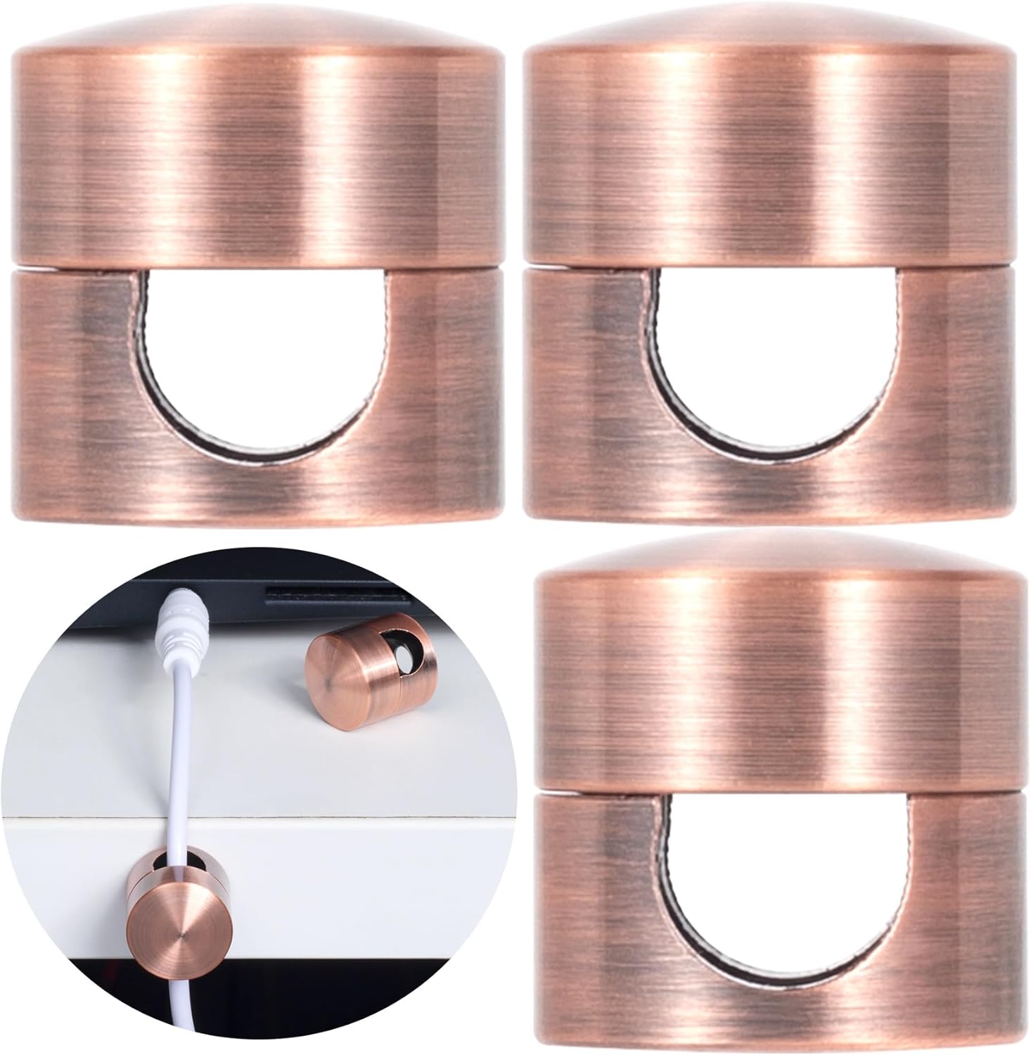 3 Sets Charger Holders for Cords, Red Bronze Color Adjustable Cable Anchor Holders, Adhesive Metal Cord Clips, Cable Management Wire Organizers for Desk, Office, Nightstand