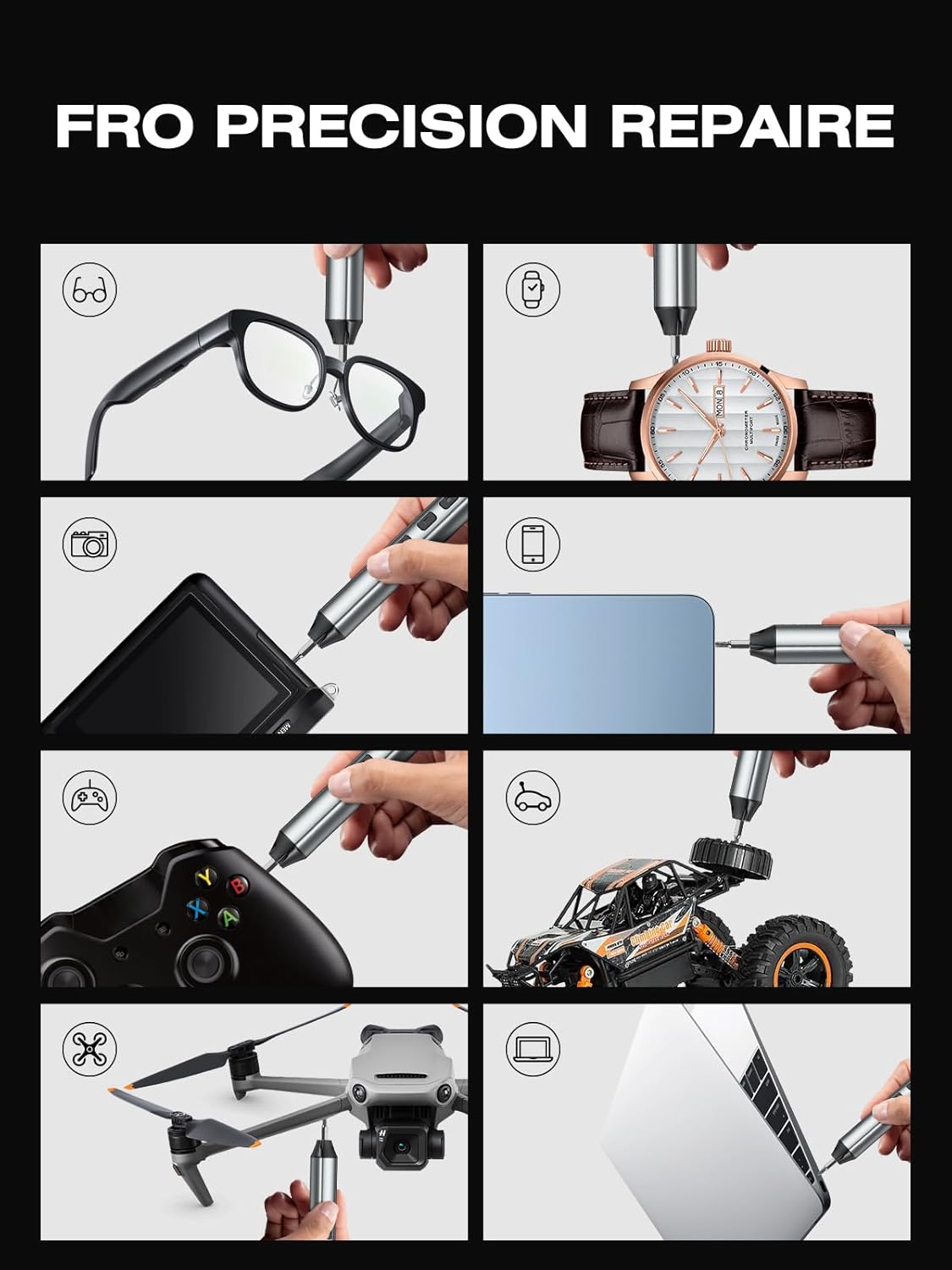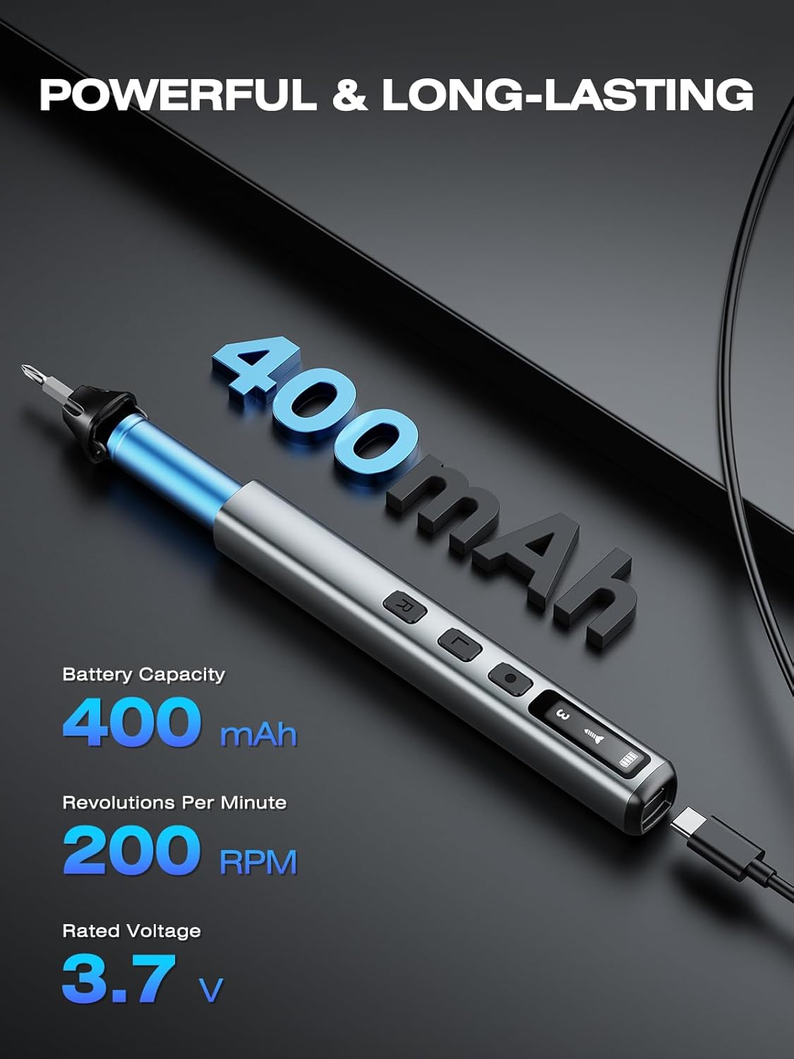 - PRECISION DUAL-MODE POWER: Equipped with a high-speed motor, it delivers multi-level adjustable torque (0.15-0.35 N.m across 4 gears), plus a powerful 5 N.m manual mode. This enables fine-tuned force for delicate electronics, ensuring optimal tightening and preventing damage, ideal for intricate repair tasks.