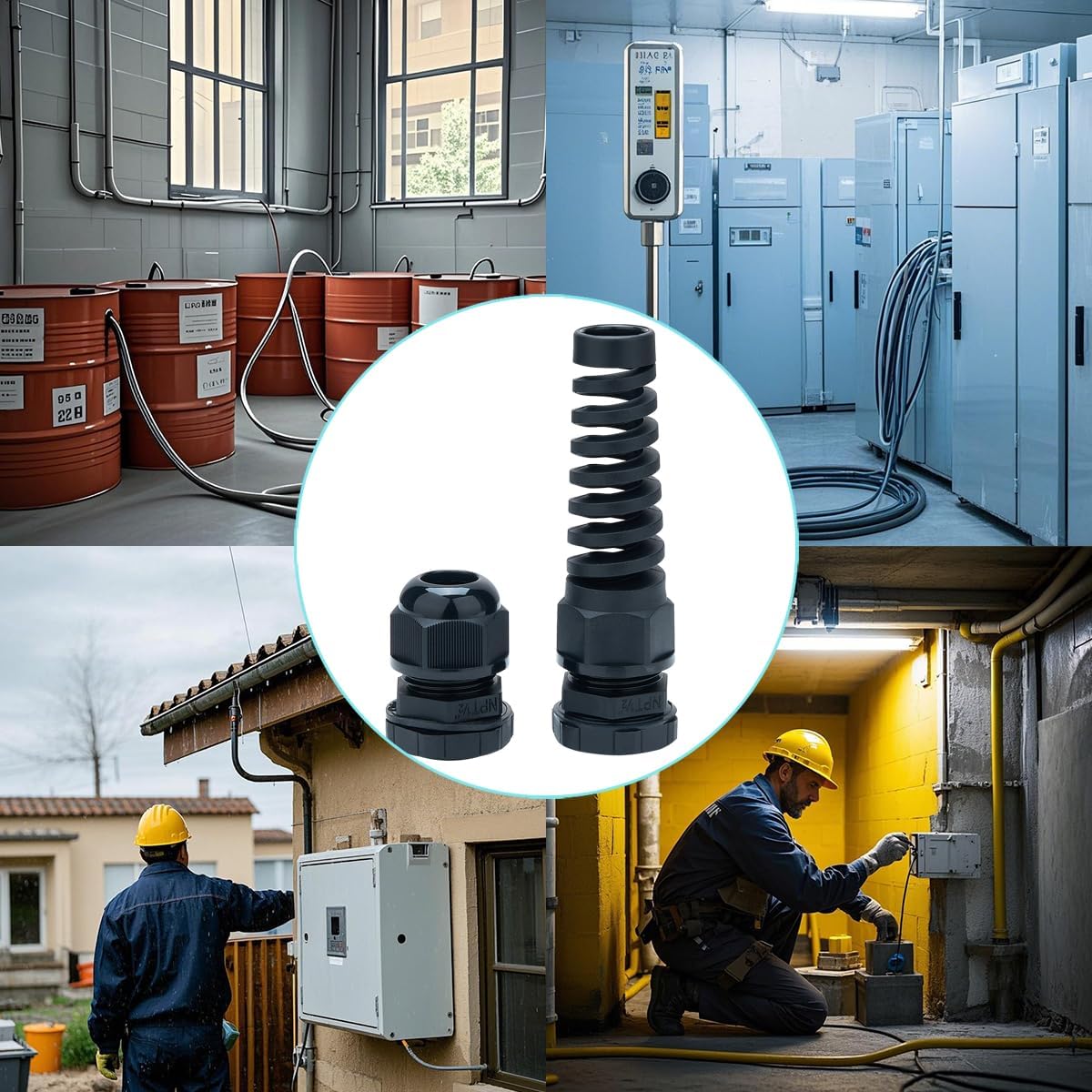10 Pack Black Nylon Cable Gland, NPT 1/2" Thread, Made of PA66 Material, High Wear Resistance and Chemical Resistance (Black, PG9(20Pcs))