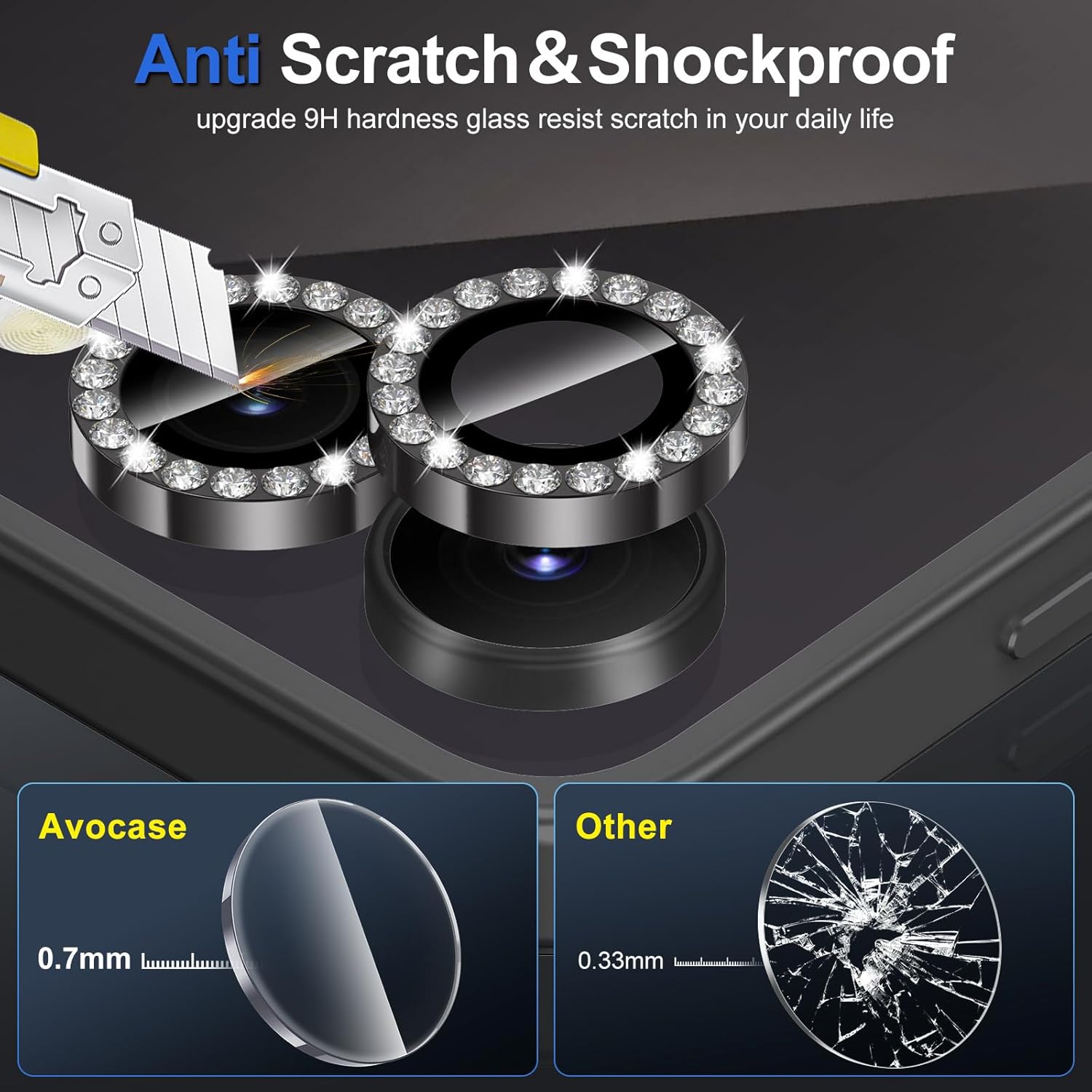 - ă9H Ultra ProtectionăMade of 9H hardness coated tempered glass and aviation aluminum alloy. This camera protector is sturdy and not bulky, can prevent the camera from scratches, scuffs and bumps. Lightweight, Dustproof, Waterproof, Oleophobic and will not affect the use of the phone case.