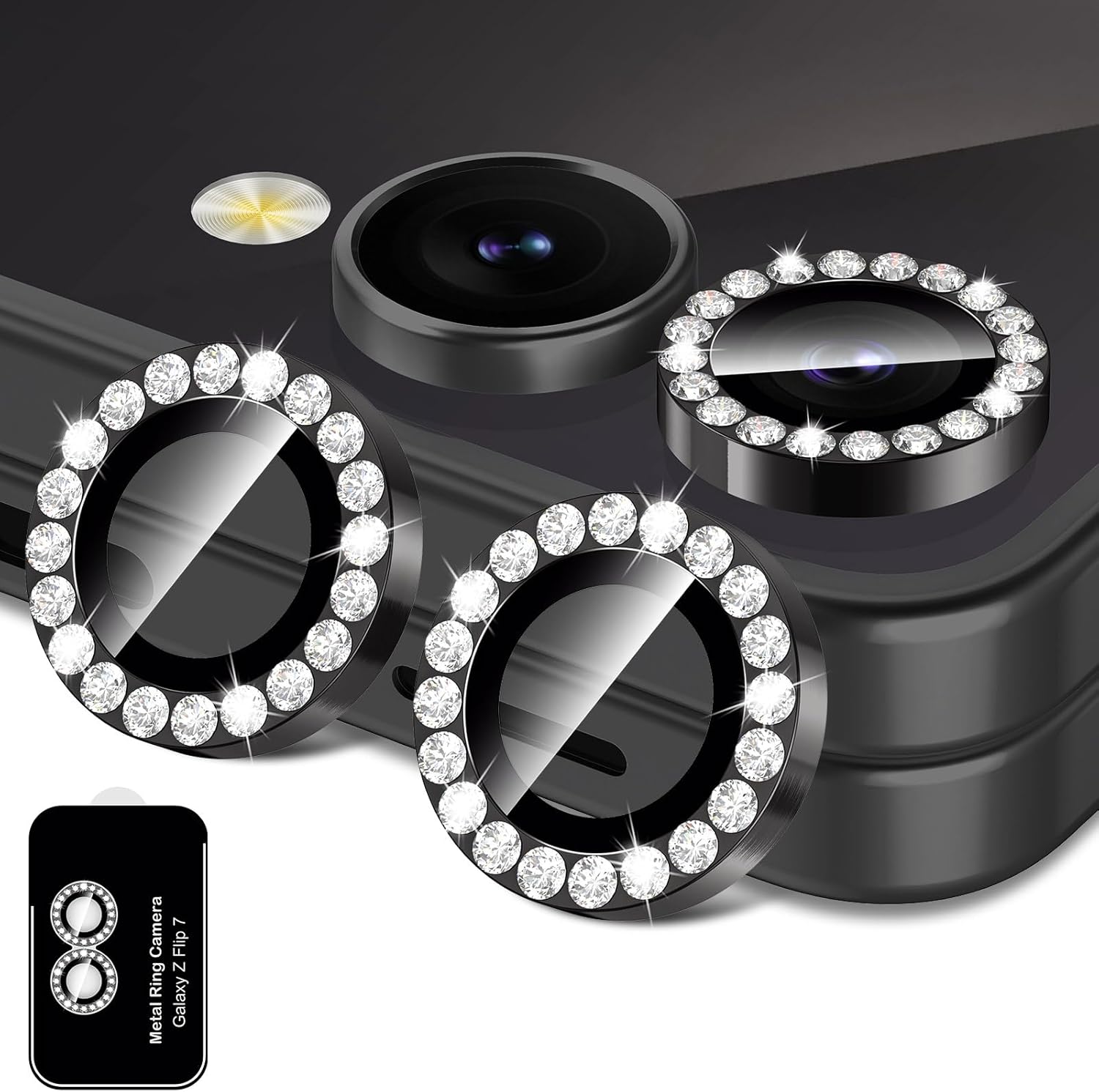 for Samsung Galaxy Z Flip 7 Camera Lens Protector, Individual Metal Ring Tempered Glass Lens Cover, [Strong Adsorption] Scratch Resistant Ultra-Thin HD Clear Lens Cover, 1 Set-Black Diamond
