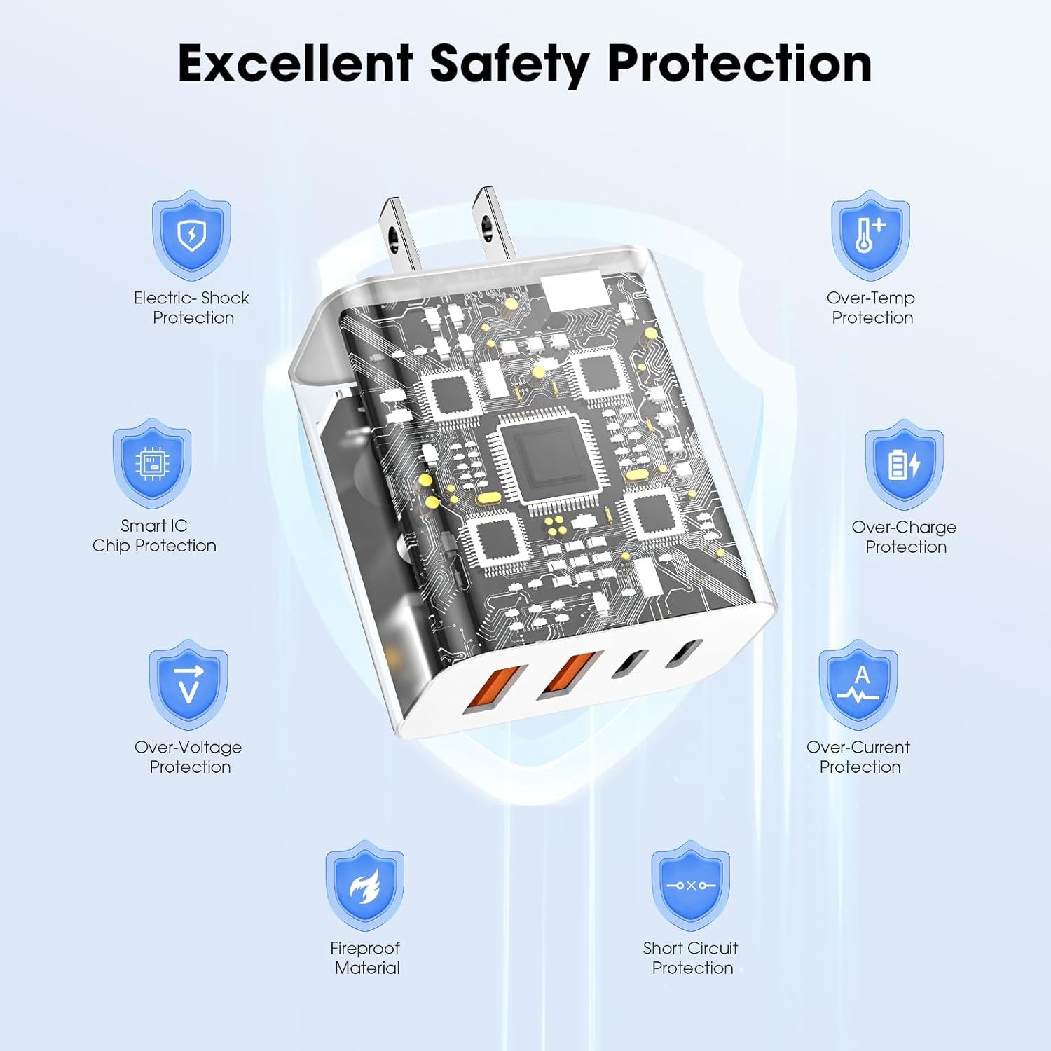 - 【Advanced Safety in Compact USB C Block】Our USB C charging block features temperature control, surge protection and short-circuit prevention - making it safer than generic fast charging blocks. Compact USBC block design outperforms bulkier Apple charging blocks.