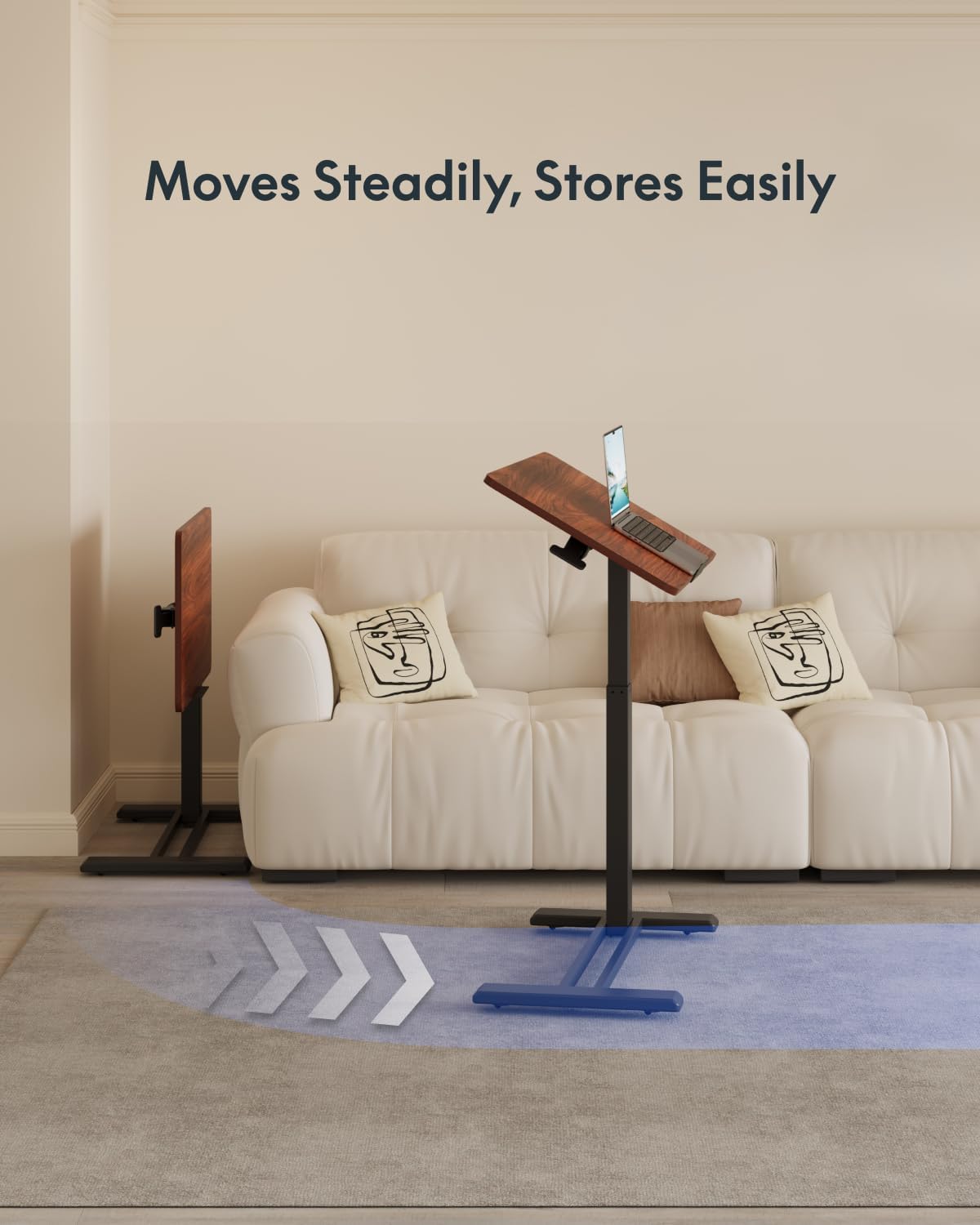 - Easy Mobility and Space-Saving Design:Equipped with 4 hidden casters, this Portable Desk and Rolling Desk Adjustable Height glides effortlessly anywhere. Its low-profile base tucks under furniture (minimum 1.2" high), serving as a compact small desk that maximizes space in homes, offices, or as an overbed bedside table.