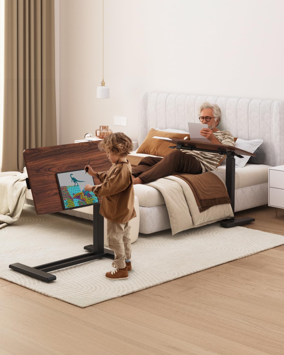 - Multi-Functional Versatility for Daily Use:As a versatile Overbed Table, Bedside Table, or Hospital Bed Table, it provides a sturdy surface for eating, reading, and working near beds, couches, or recliners. The spacious 31.5" W x 17.7" D desktop doubles as a Laptop Desk, catering to home offices, study, or patient care without leaving the bed.