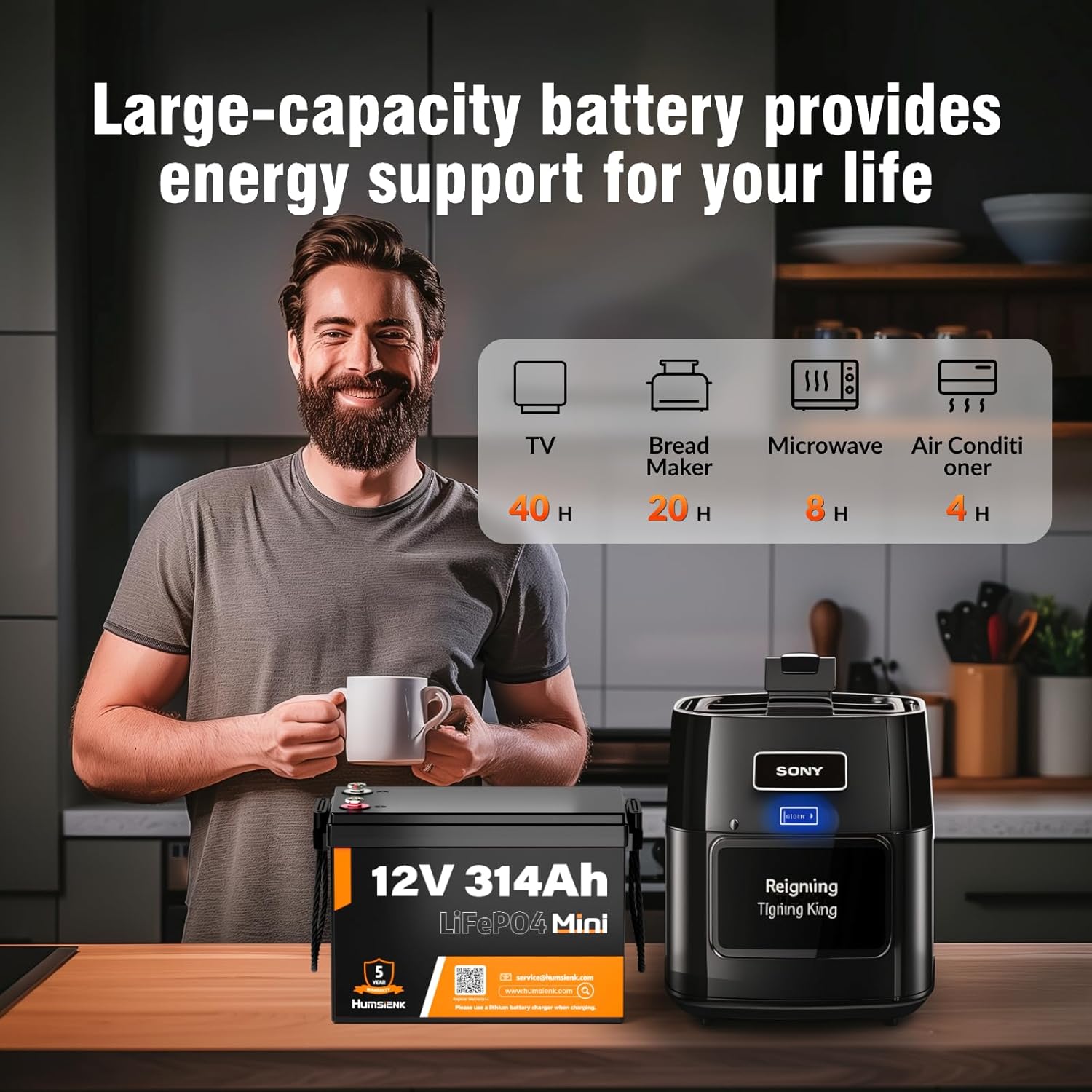 - 【4.19kWh & 15,000+ Deep Cycles】Our 12.8V 314Ah LiFePO4 battery offers an impressive 15,000+ deep cycles, lasting 30 times longer than traditional 300Ah lead-acid batteries. Fully charged, the LiFePO4 battery delivers 4.19kWh of energy with nearly 100% depth of discharge (DOD), ensuring reliable power for your devices. surpassing three 12V100Ah/ 12V 300Ah lithium batteries connected in parallel. Perfect for RVs, solar systems, home storage, trolling motors, and marine use. Supports up to 4S4P configurations for a maximum capacity of 64.307 kWh.