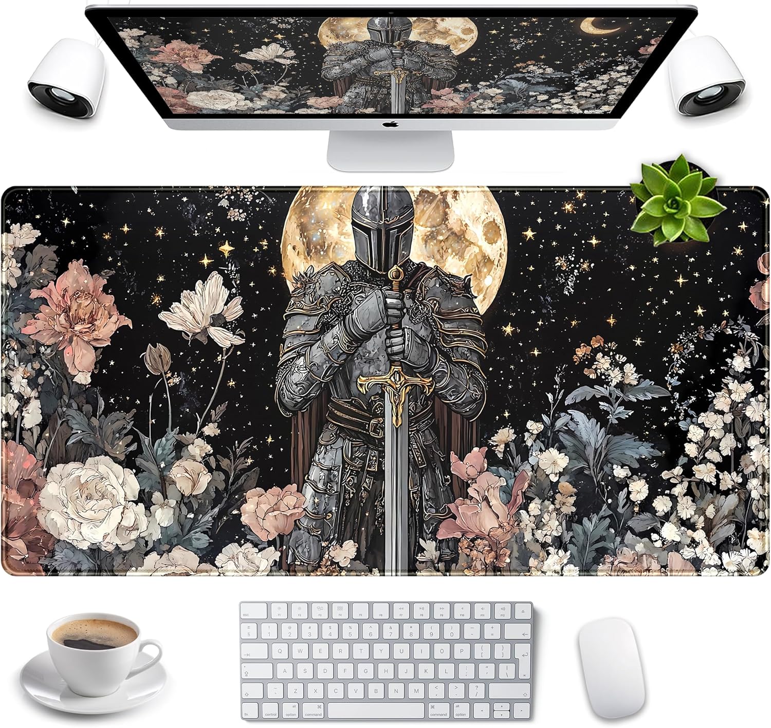 Cute Vintage Floral Mouse Pad Warrior Gaming Desk Mat Retro Flowers Mousepad XXL Large Extended Boho Aesthetic Desk Pad, Laptop Computer Keyboard Mouse Mat, Desktop Pad Mat for Women 31.5x15.7 in