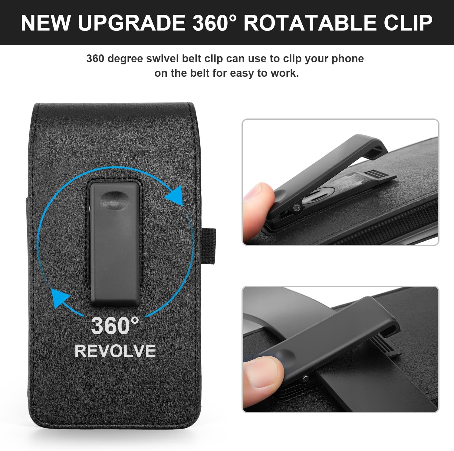 BECPLT Phone Holster for Galaxy S25 Ultra S24/S23/S22/S21/S20 Ultra Leather Belt Case 360 Rotating Pouch Holster Belt Clip Case Holder Black
