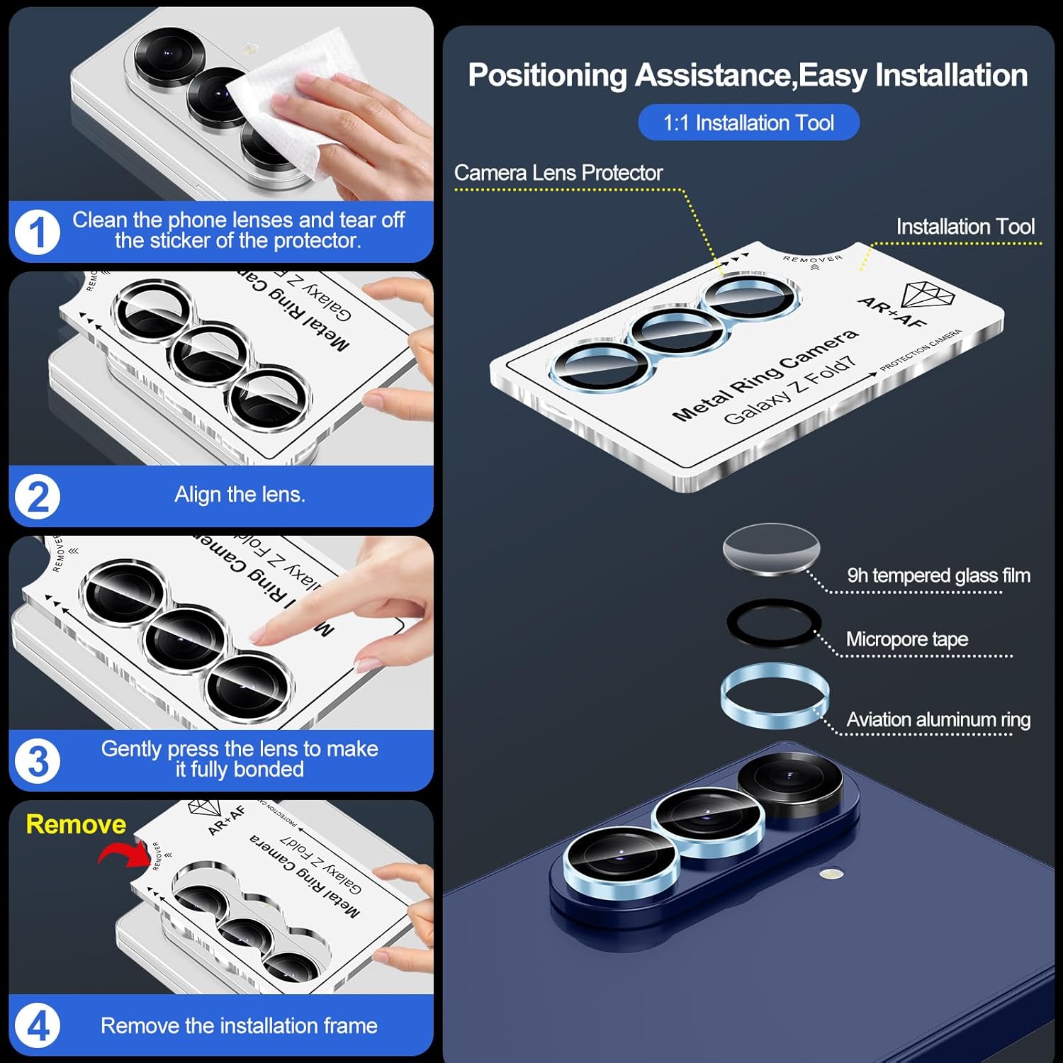 - ăCompatible ModelăThis ultra-thin camera lens protector only compatible with Samsung Galaxy Z Fold 7. DO NOT FIT other models. Easily fit and match with most phone cases.