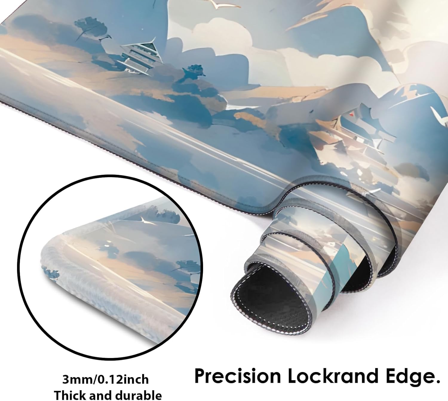 Galdas Gaming Mouse Pad XXL XL Large Long Extended Big Mousepad Non-Slip Rubber Keyboard Mouse Pad with Stitched Edges for Laptop Home Office (31.5x11.8x0.08 Inch) -Cloud Scenery