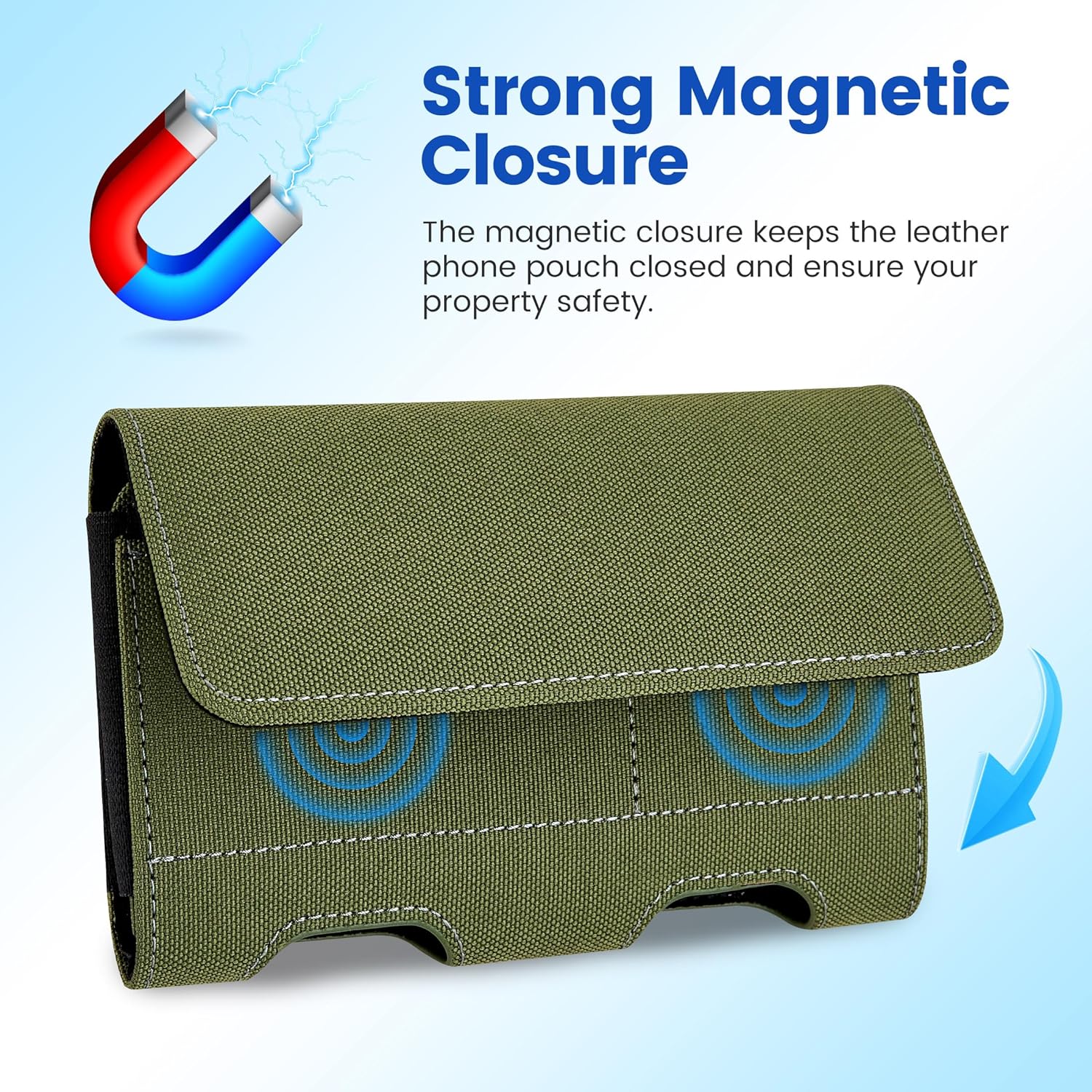 - Durable Nylon Holster with Magnetic Closure --- Made from rugged ballistic nylon, this horizontal phone holster features a reliable magnetic flap for quick, secure access — ideal for everyday use, work, or outdoor activity.