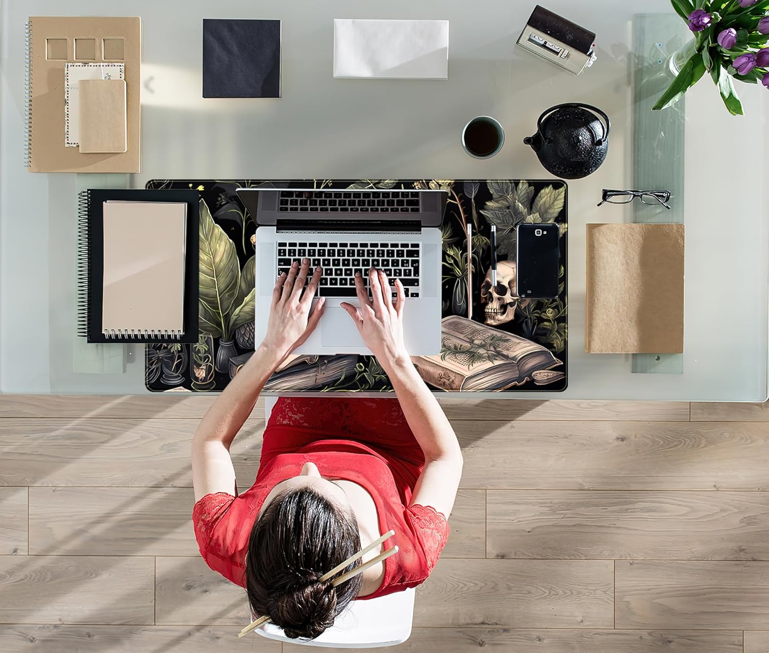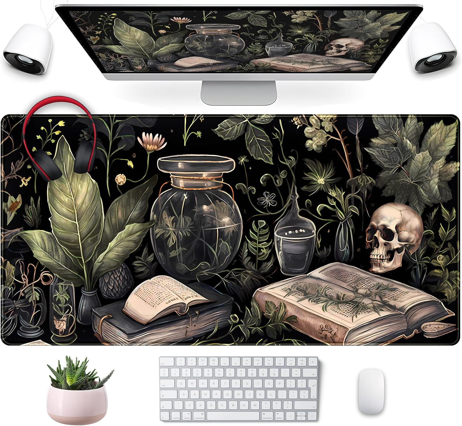 Cute Skull Desk Mat Dark Academia Desk Matt for Desktop Kawaii Anime Plants Mouse Pad XXL Extended Large Gaming Desk Pad, Laptop Computer Keyboard Mouse Mat Office Decor Accessories, 31.5x15.75 in