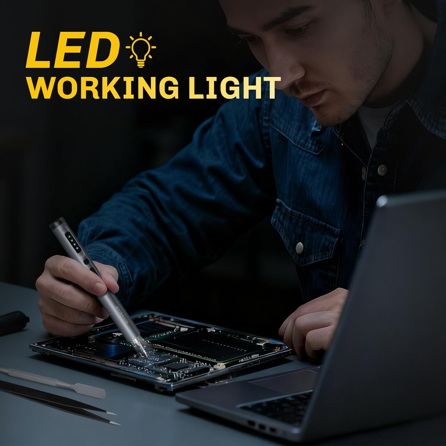 - Powerful 500mAh Rechargeable Battery:The precision electric screwdriver equipped with a long-lasting lithium battery (3.7V) and charges via USB-C for quick power-ups. No messy wires or misplaced tools.Ideal for continuous use in electronics repair,DIY projects,and small appliance maintenance.The type-C port provides a convenient experience. The robust motor has a maximum speed of 180 RPM, making hard work done with ease.
