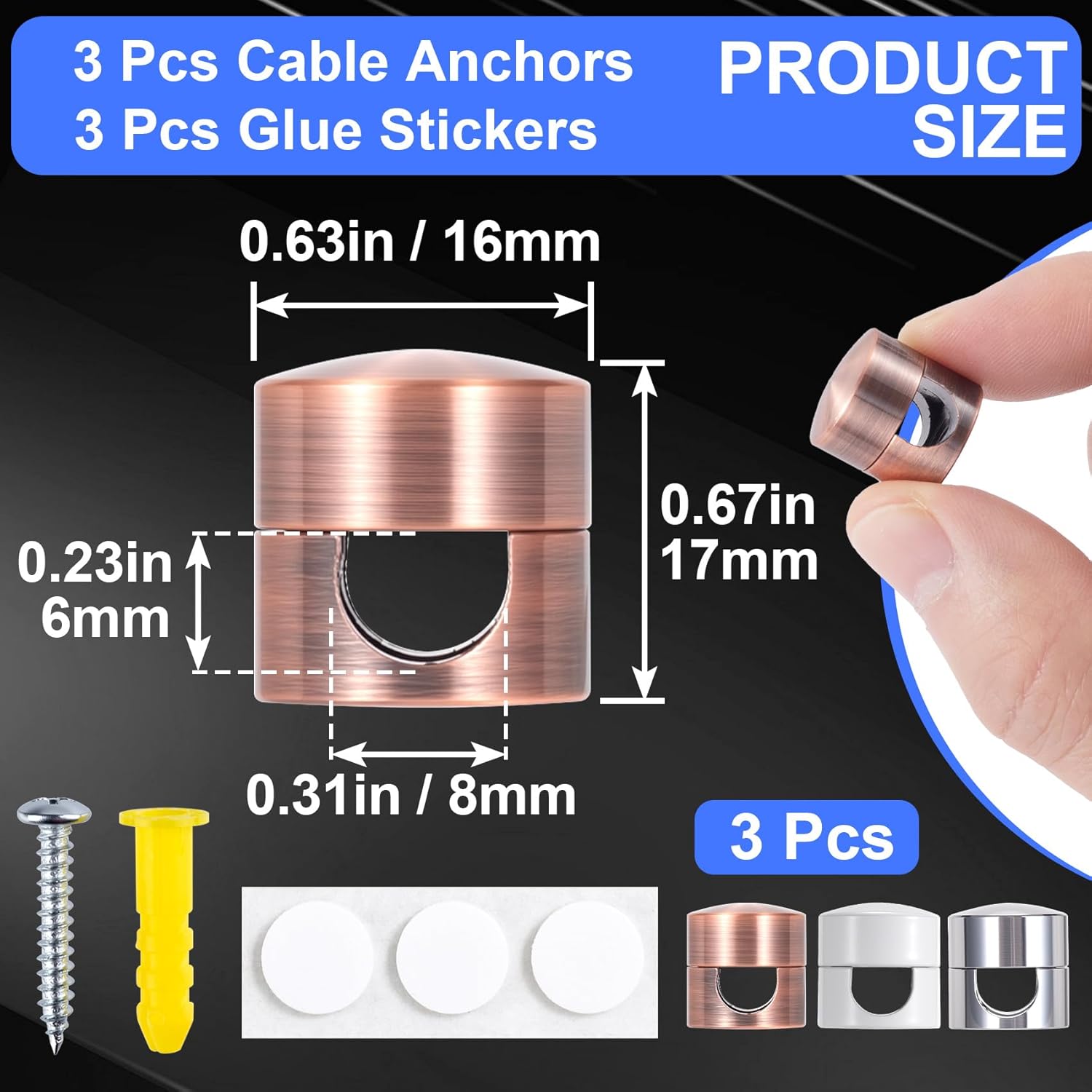 - Package Included and Size: You will receive 3 sets cable anchor holders for cords, white, silver, red bronze color, enough for your daily use. The size of each cord holder is 0.67 x 0.63 in/17 x 16 mm and the hole size is 0.31 x 0.23 in/8 x 6 mm, easy to carry and use