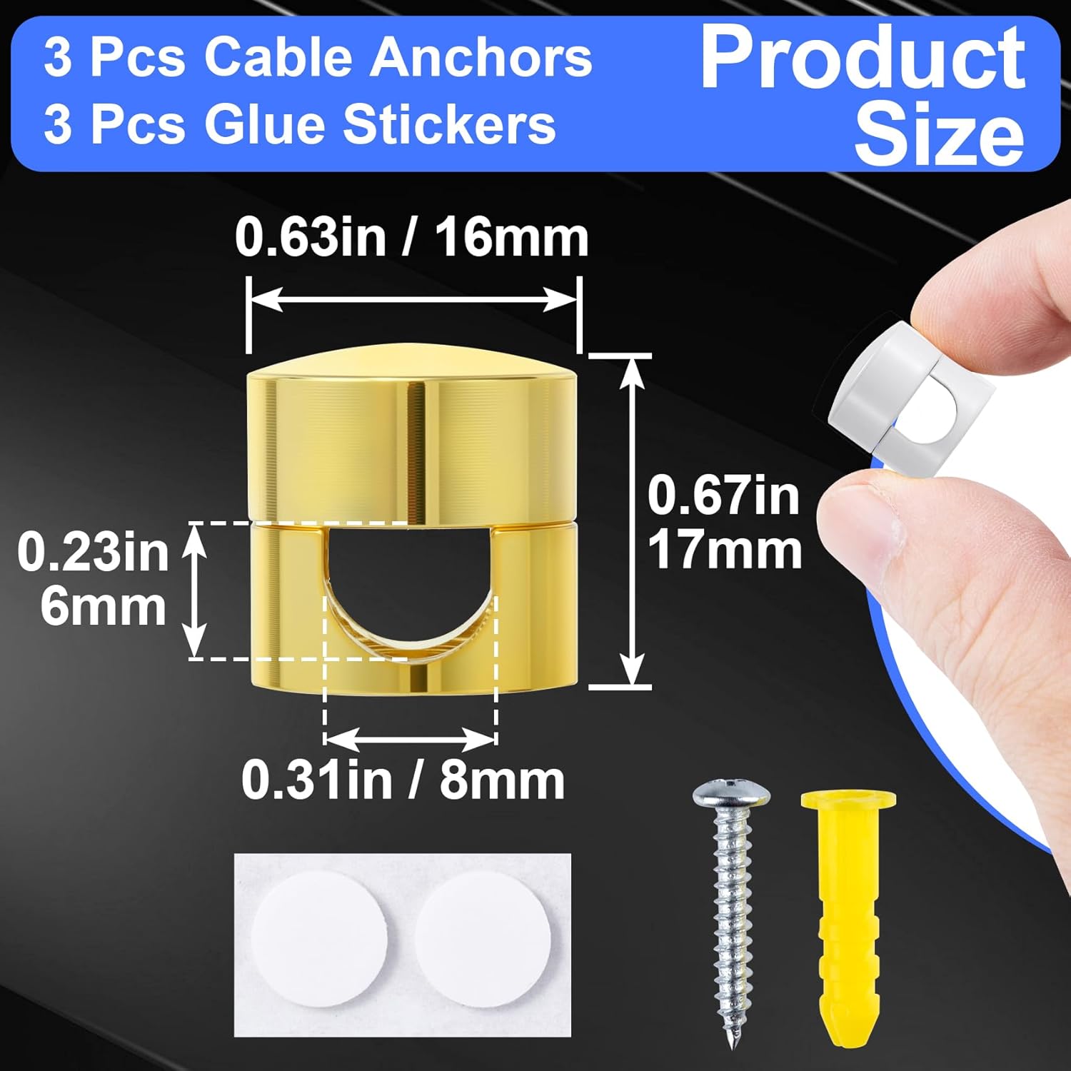 - Package Included and Size: You will receive 3 sets cable anchor holders for cords in different color: gold, white, silver, enough for your daily use. The size of each cord holder is 0.67 x 0.63 in/17 x 16 mm and the hole size is 0.31 x 0.23 in/8 x 6 mm, easy to carry and use