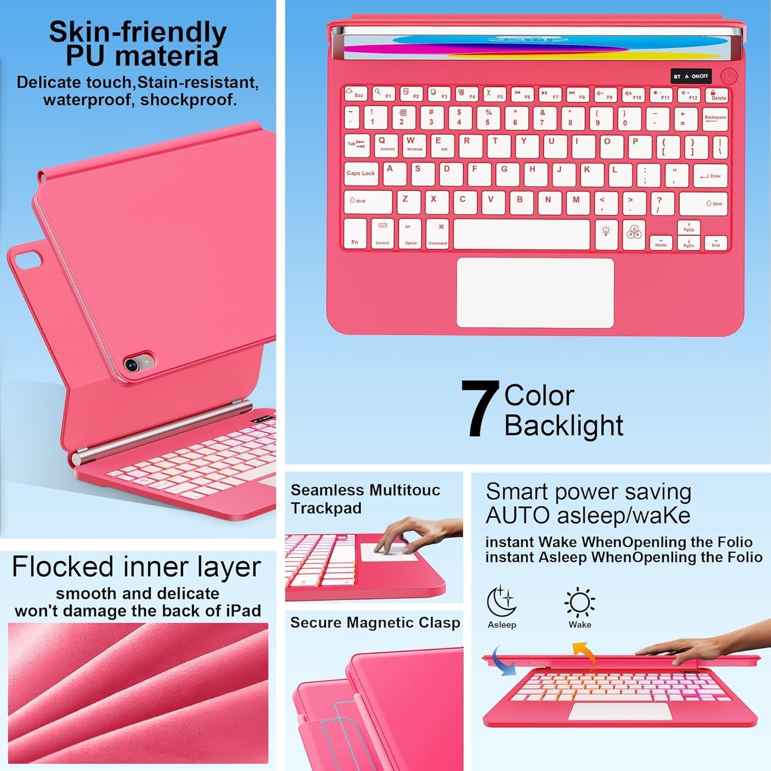 for iPad 11th (A16) & 10th Generation Case with Keyboard – Magic-Style Magnetic – Floating Cantilever Stand - Multi-Touch Trackpad Keyboard Case for iPad 11 inch 2025&10th Gen 10.9 inch (Rose Red)
